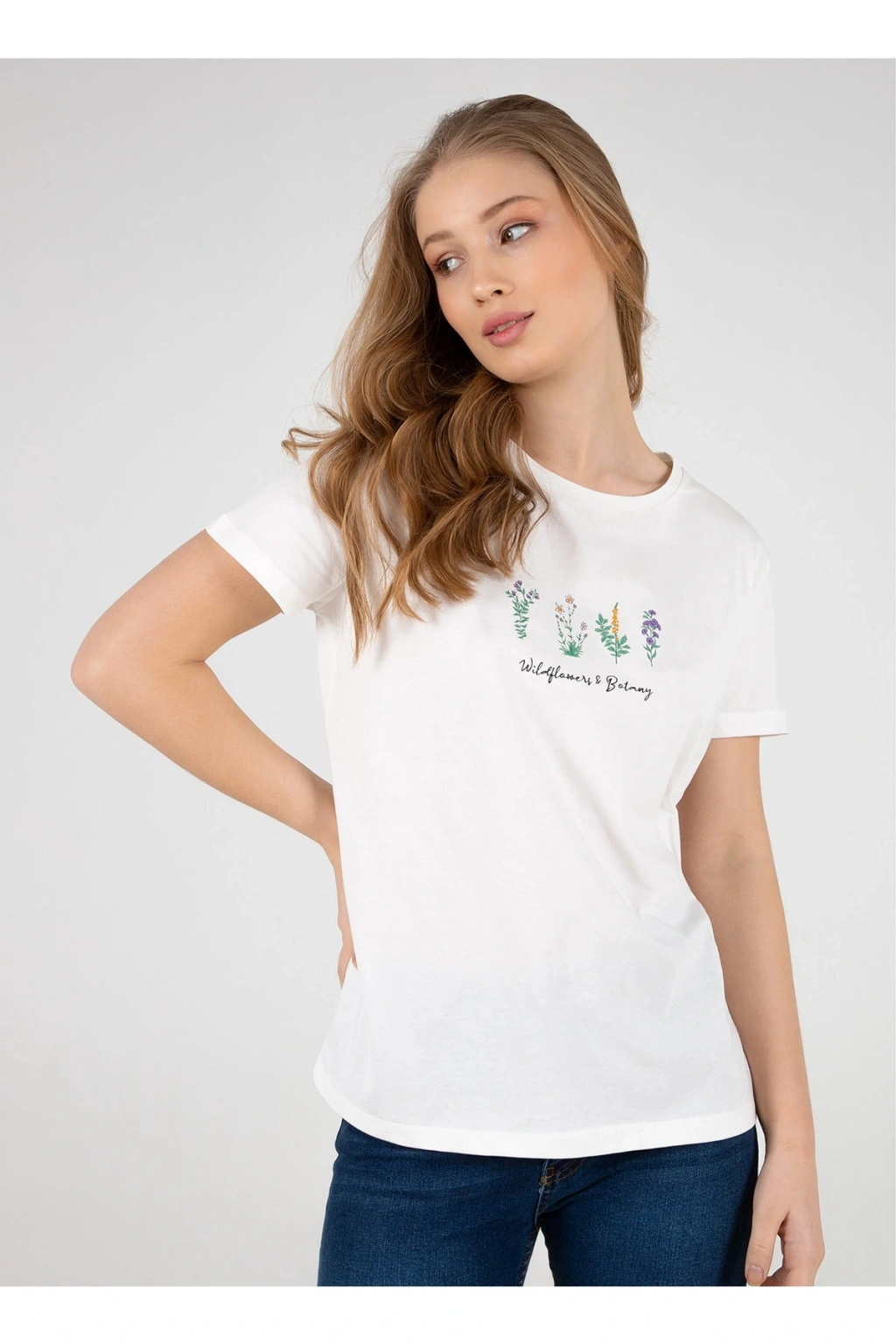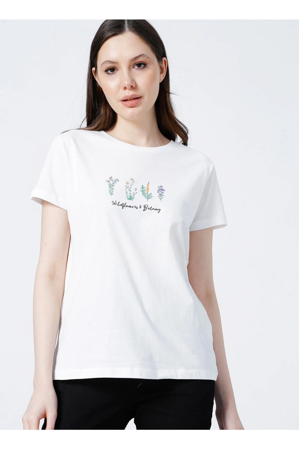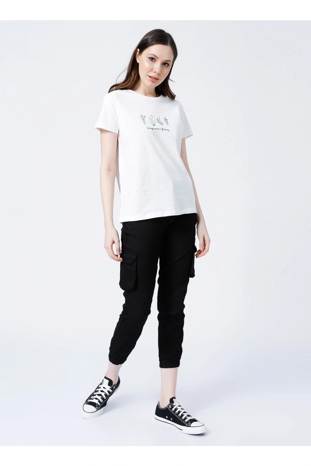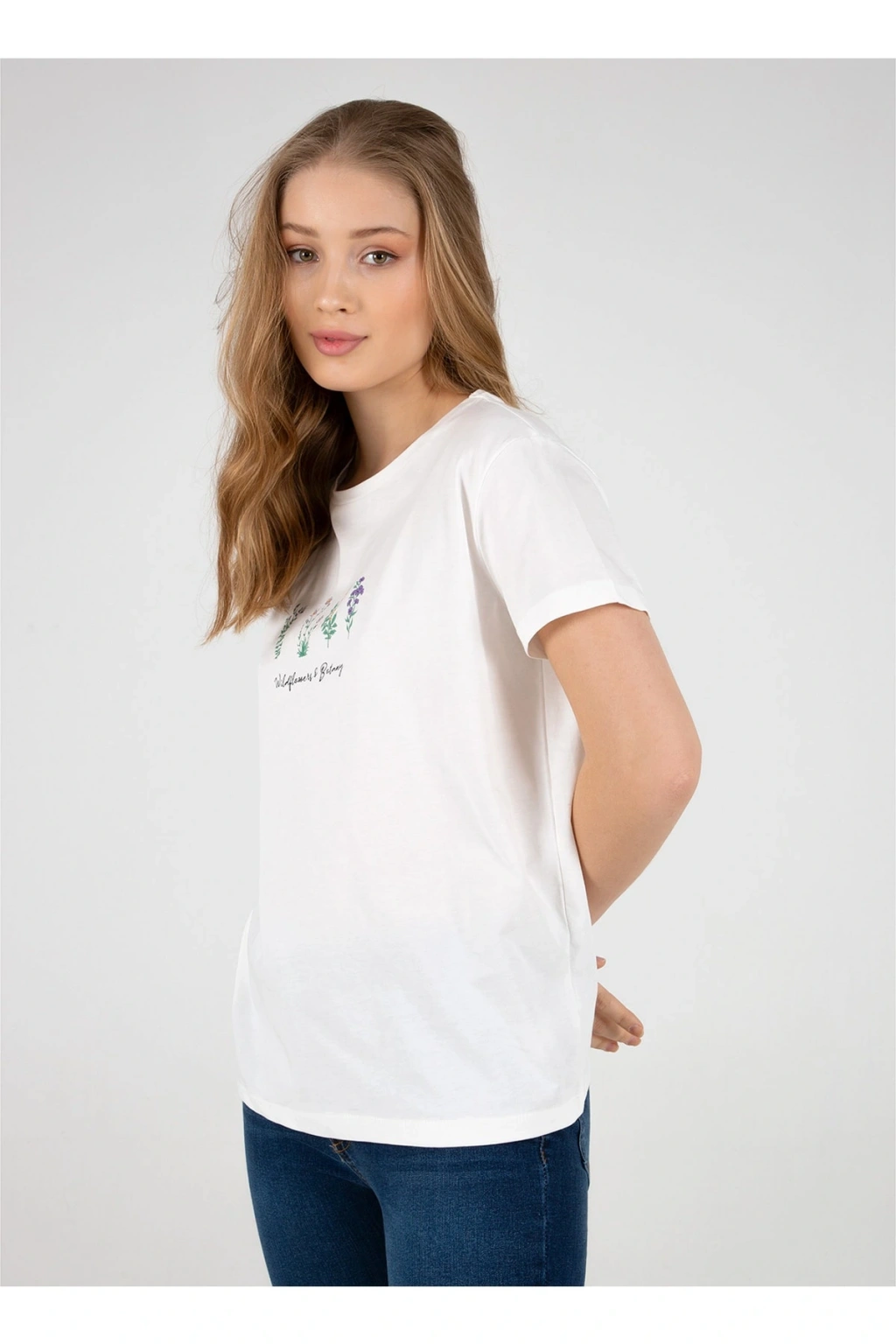 - Standart beden ölçülerine uygun, rahat bir kullanım sunan regular kalıp tasarımıyla günlük giyim için idealdir; - Dokuma kumaş yapısı sayesinde dayanıklılığı ve konforu bir arada sunar, uzun süreli kullanımlarda bile formunu korur; - Baskılı deseniyle şık ve modern bir görünüm kazandırırken, ekru rengi her türlü kombinle uyum sağlar; - Bisiklet yaka tasarımı ile sade ve zarif bir stil oluştururken, kısa kollu yapısı mevsim geçişlerinde ideal bir tercih haline getirir; - Basic silueti sayesinde zamansız bir parça olup, farklı aksesuarlarla kolayca kombinlenebilir; - Her yaş grubuna hitap eden geniş kullanım yelpazesi ile herkes için uygunluk sağlar;