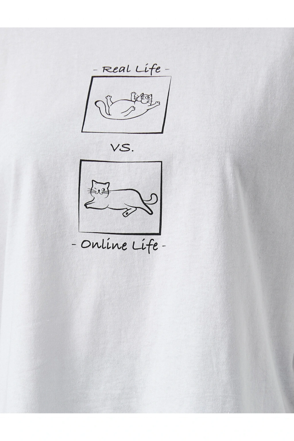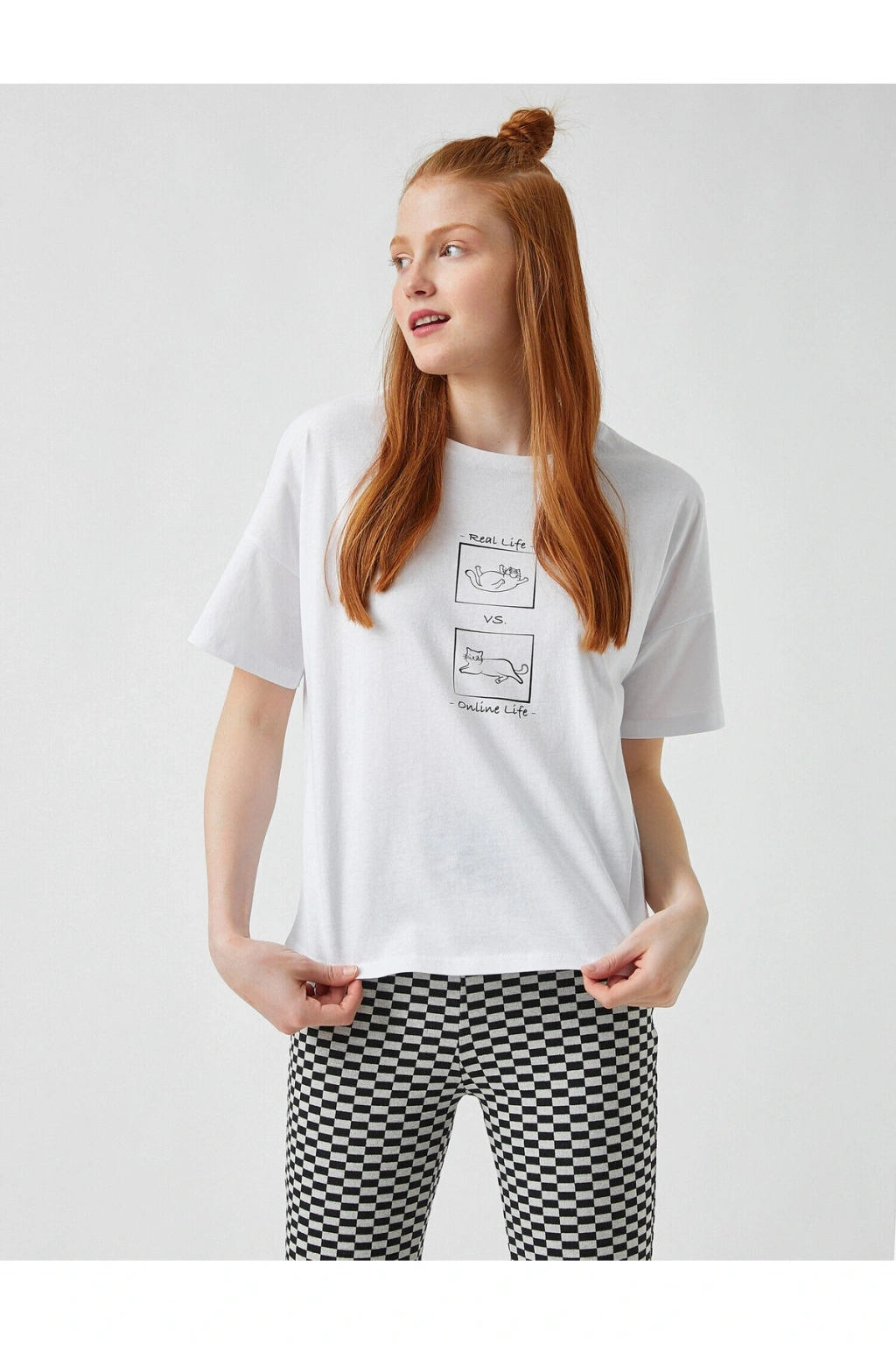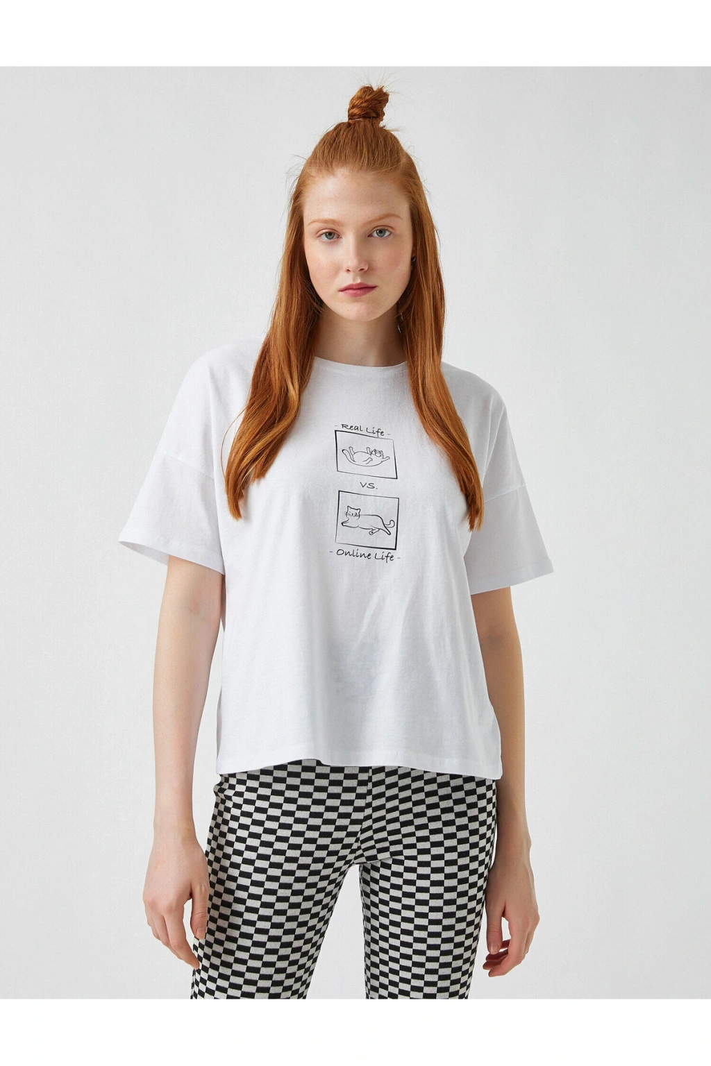 Baskılı Kısa Kollu Pamuklu Tişört | Model Boy: 175 | Model Kalça: 85 | Model Üst: 63 | Model Bel: S | Model Göğüs: 83 | Model Jean: 27/32