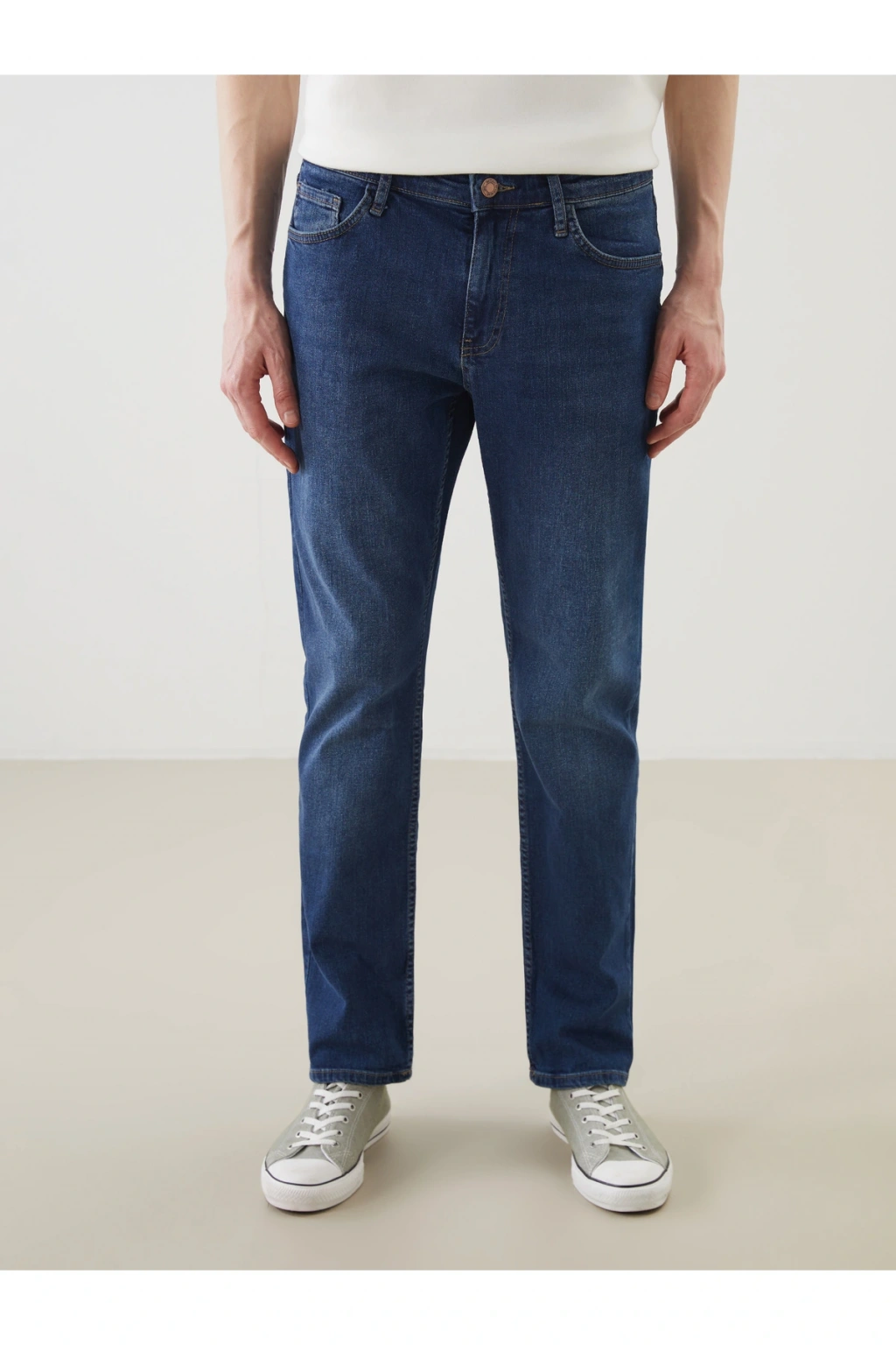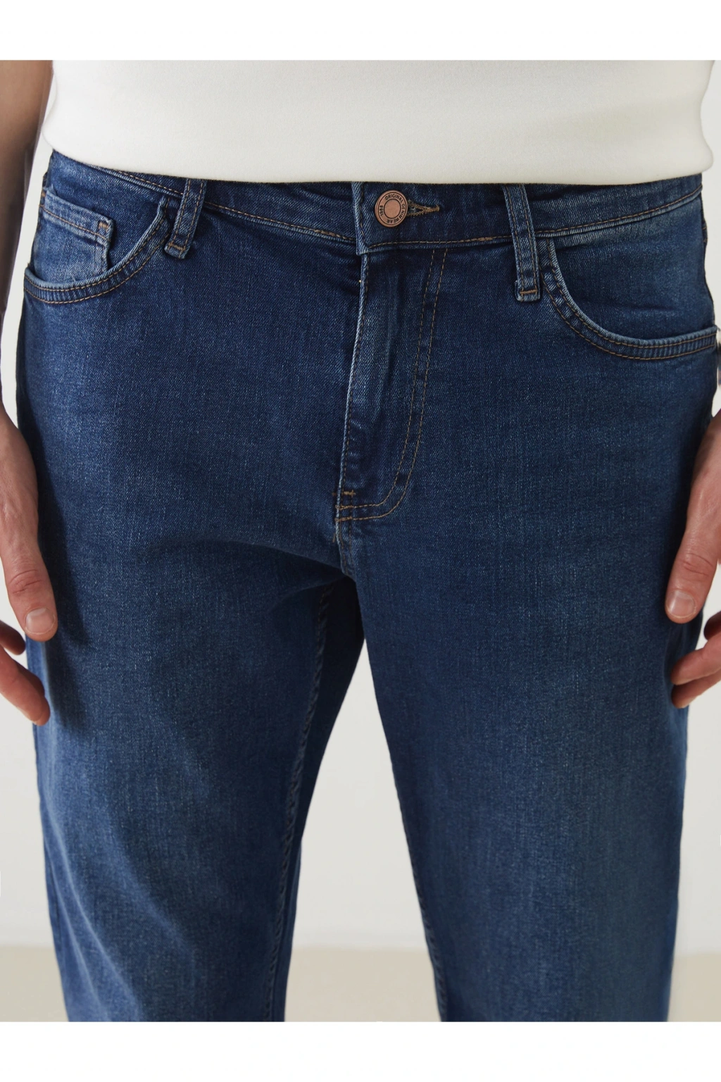 Regular fit jean pantolon, dizden paçaya doğru inen düz kesimi sayesinde gün içinde kullanım kolaylığı ve rahat kombinleme özelliğiyle her görünüme uyum sağlar.