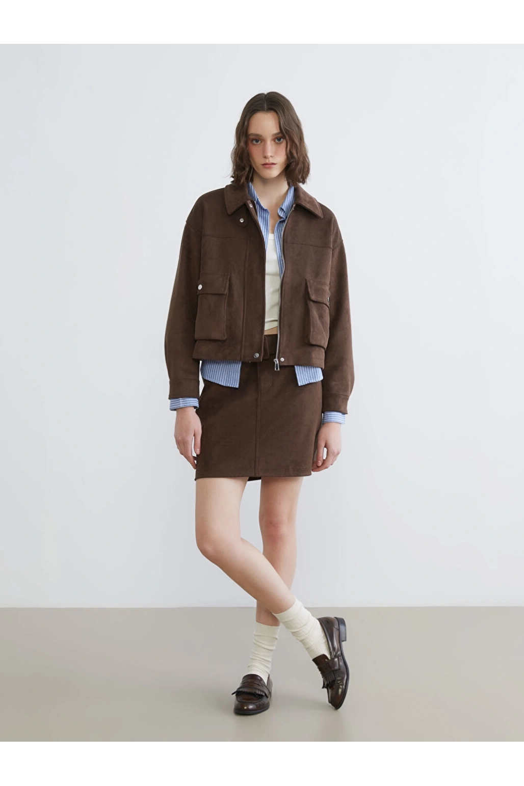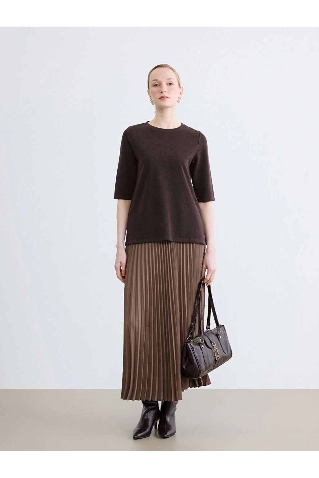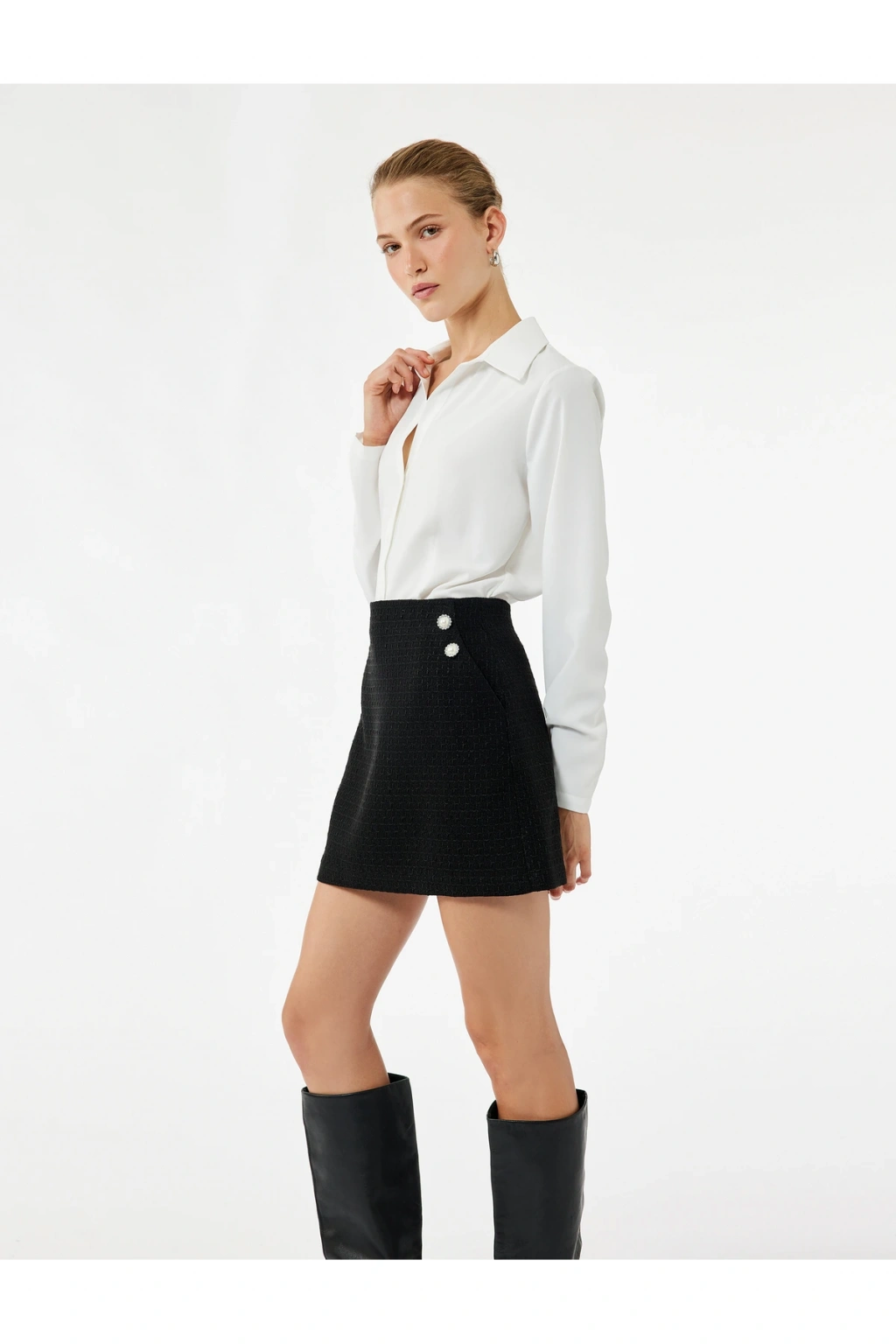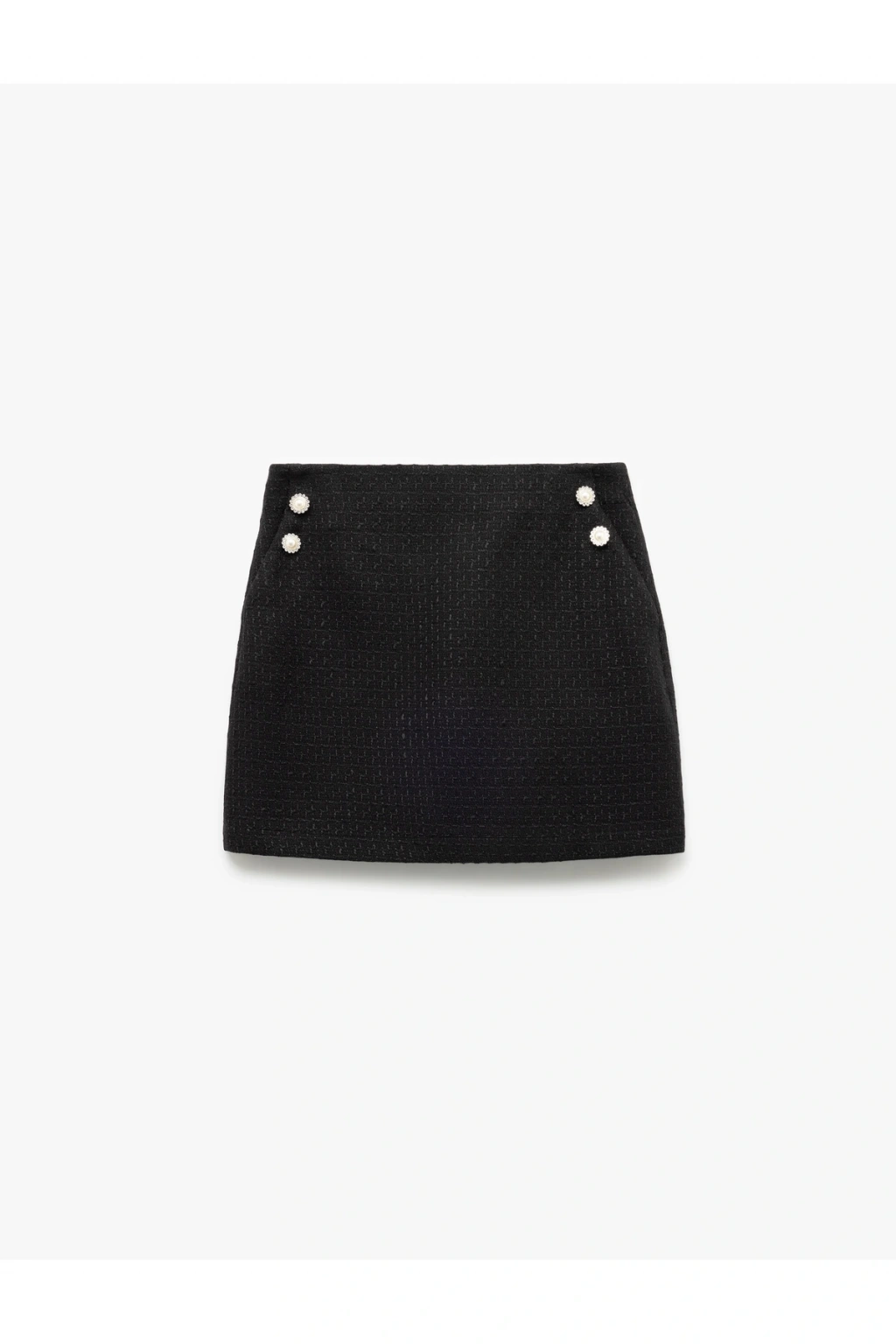Tüvit mini etek, zarif tasarımı ve klasik duruşuyla dikkat çekiyor. Mini boyu, günlük şıklık ve zarafet arayanlar için ideal bir tercih sunuyor. Yan cep detayları ve düğmeleri eteğe modern ve sofistike bir hava katarken, standart bel tasarımı günlük kullanımda rahatlık sağlıyor. A kesim silüeti sayesinde eşsiz kombinler yaratıyor.