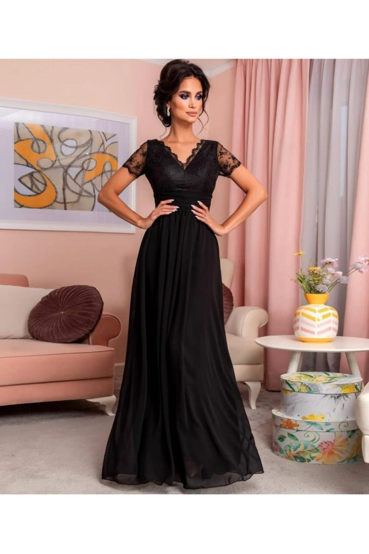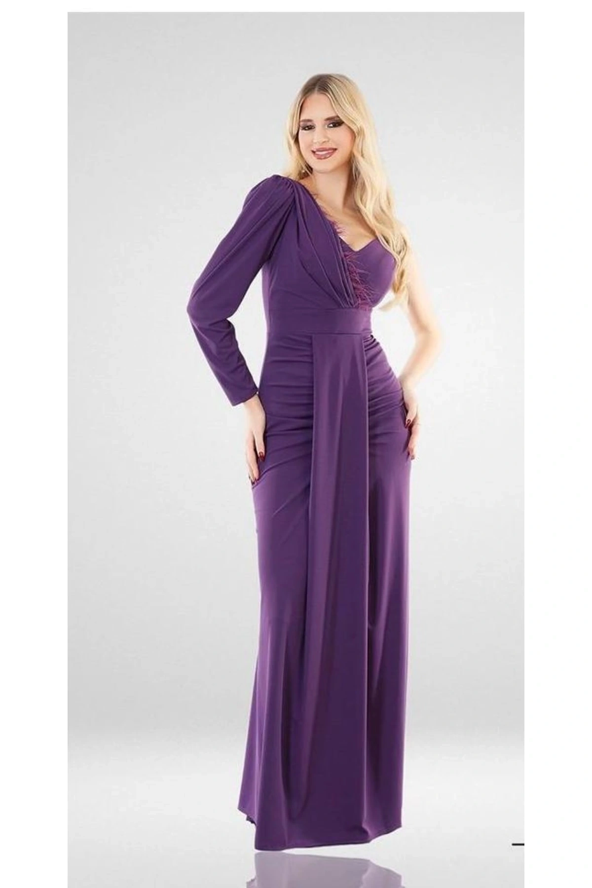 Göğüs Tüy Detaylı Tek Kol Uzun Elbise