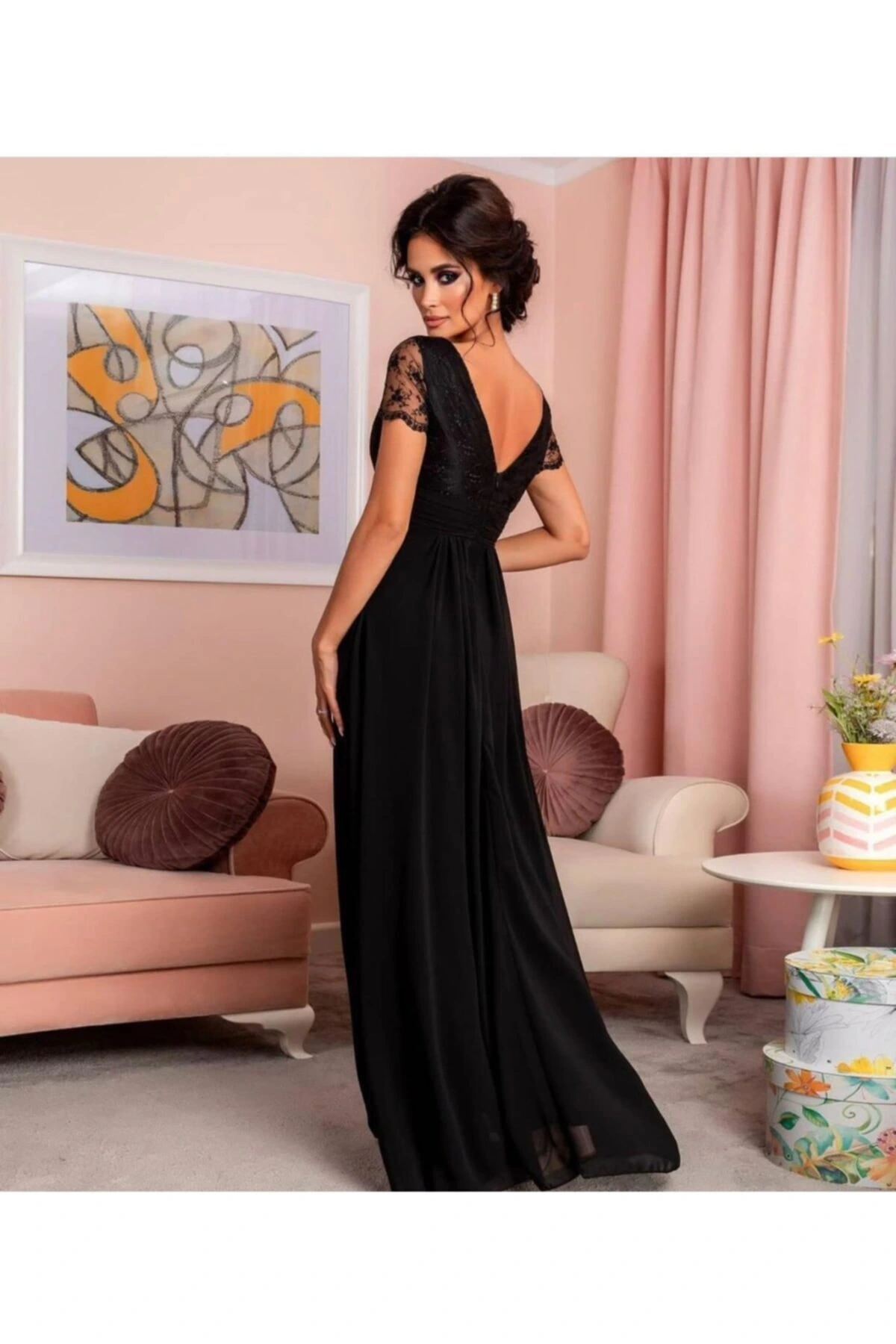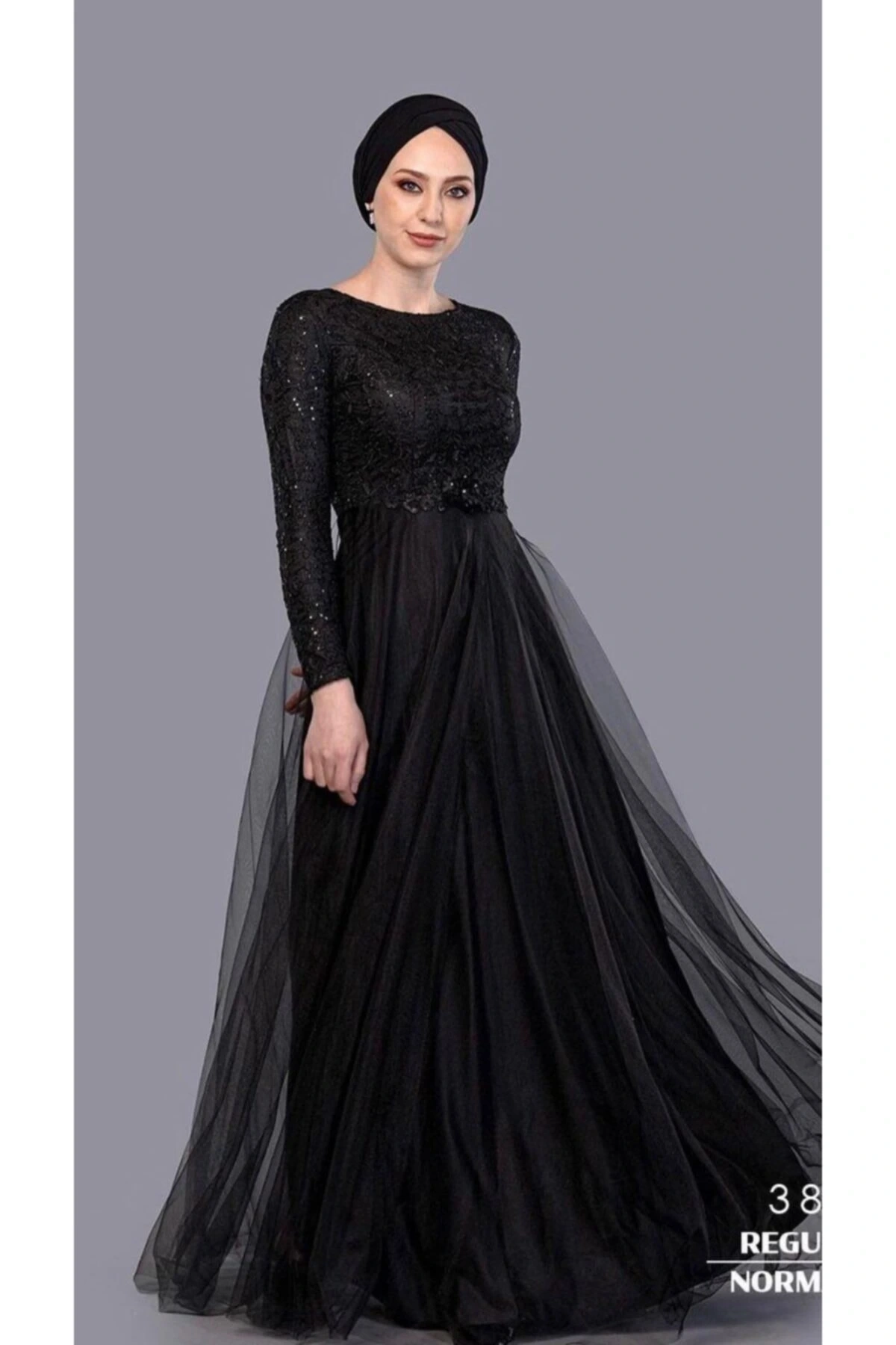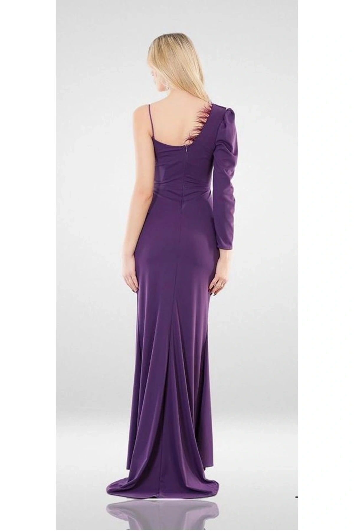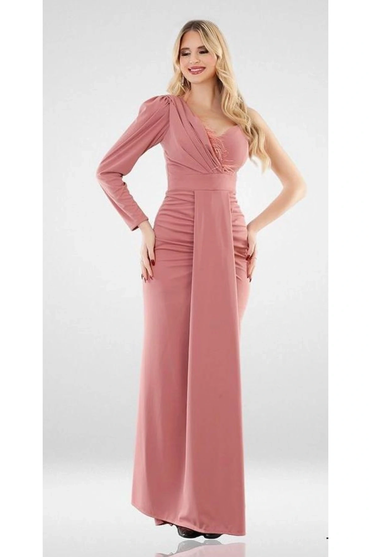 Göğüz Tüy Detaylı Tek Kol Uzun Elbise