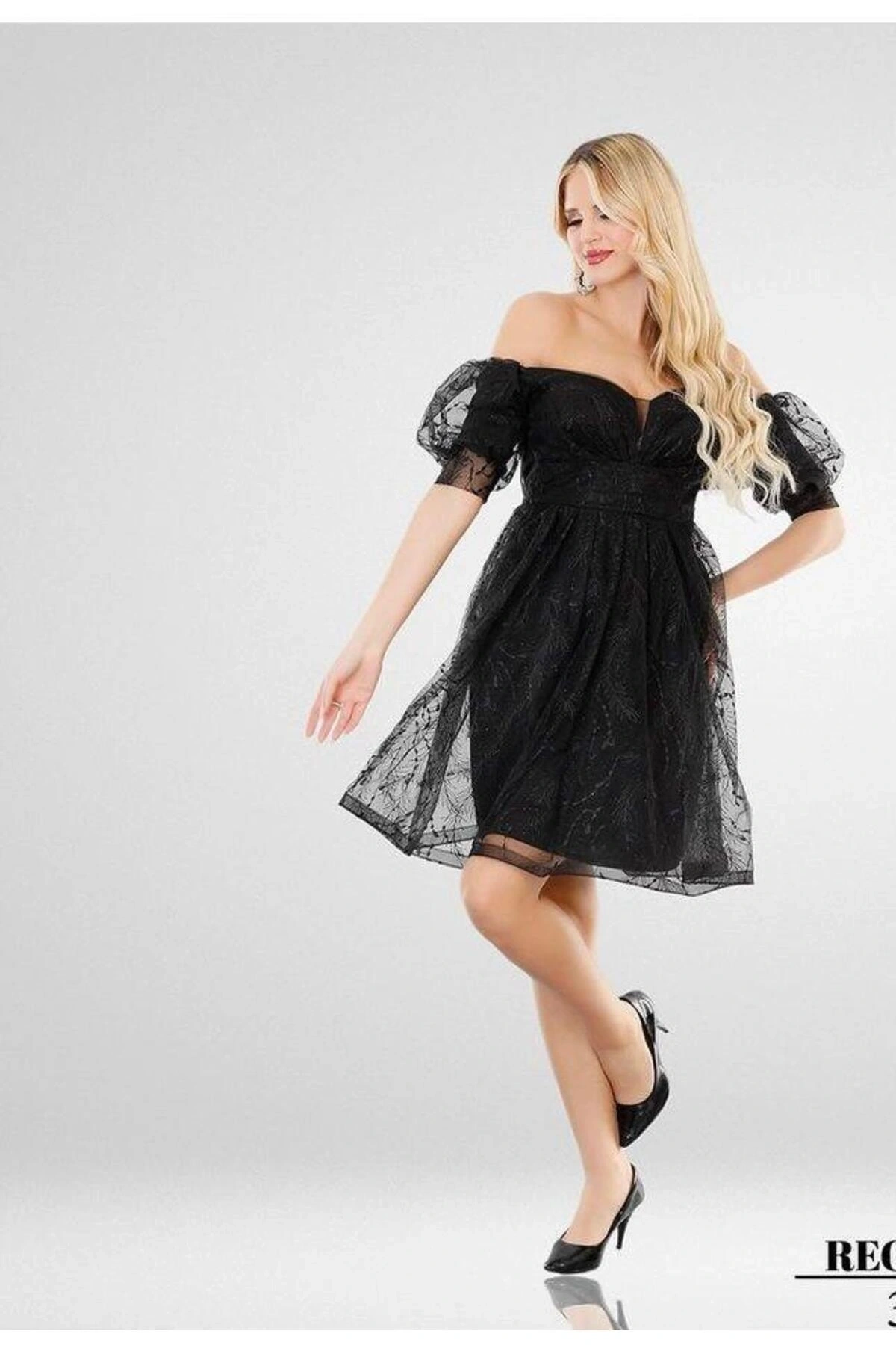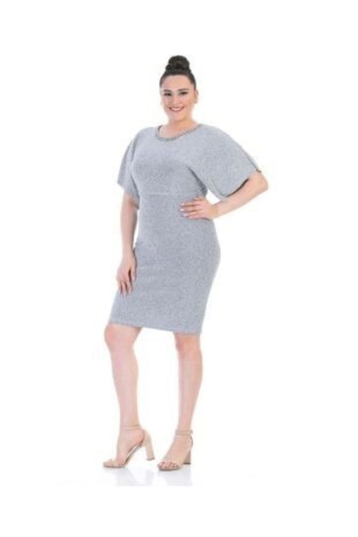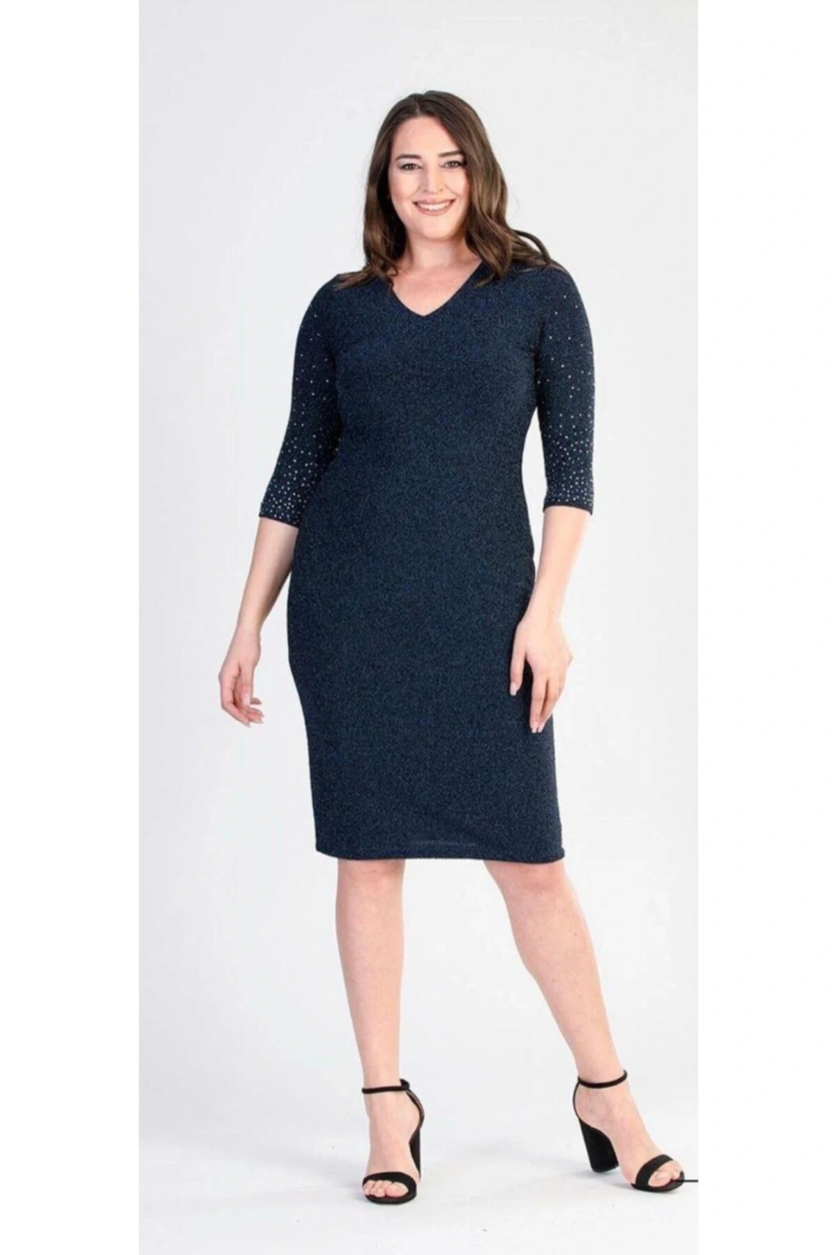 Pileli Diz Üstü Uzun Kol Kadife Elbise