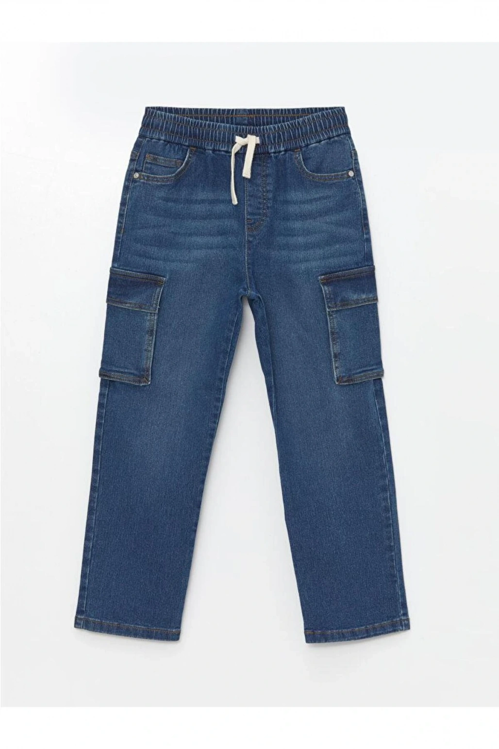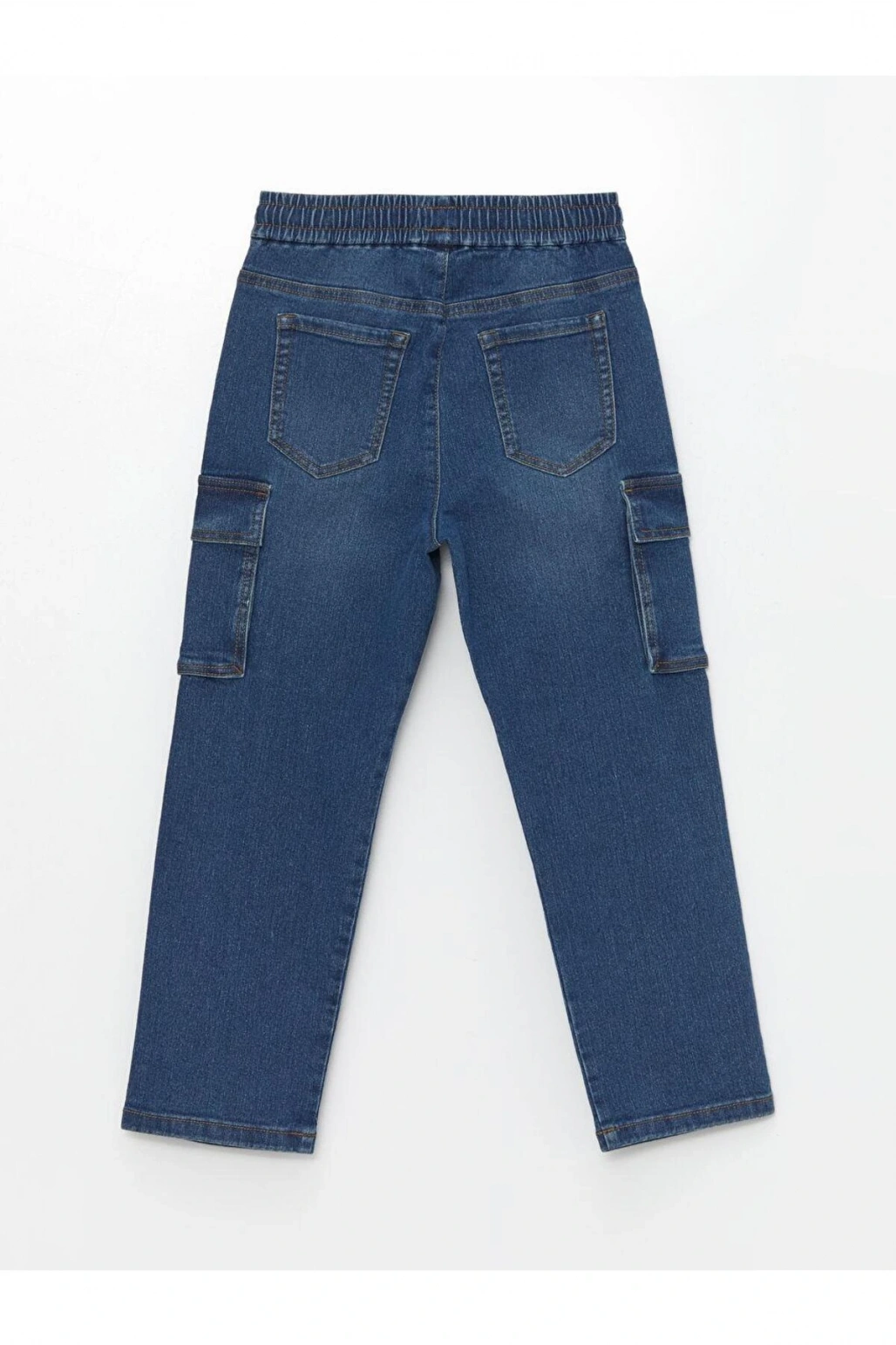Kids İndigo Beli Lastikli Erkek Çocuk Kargo Jean Pantolon