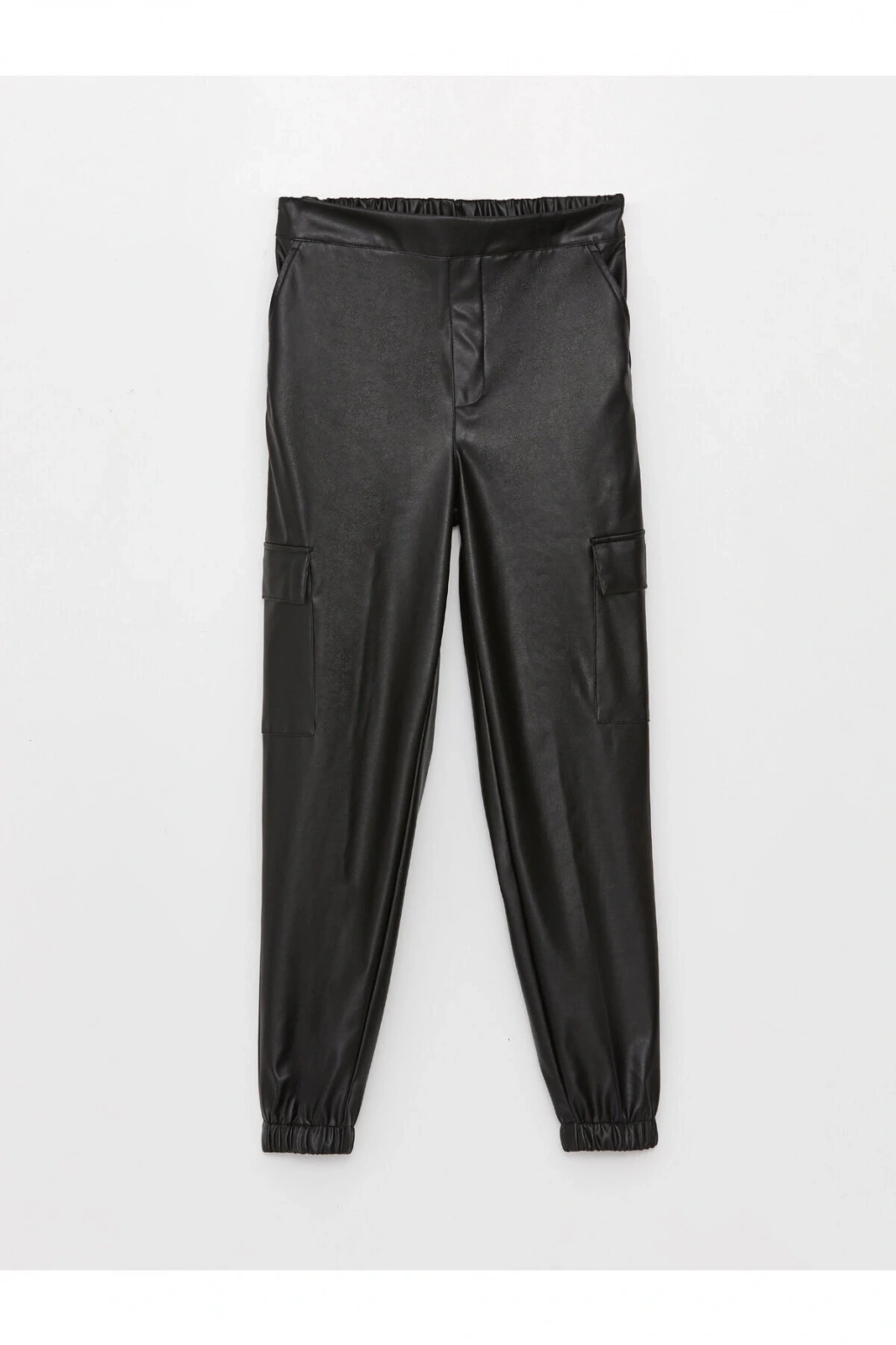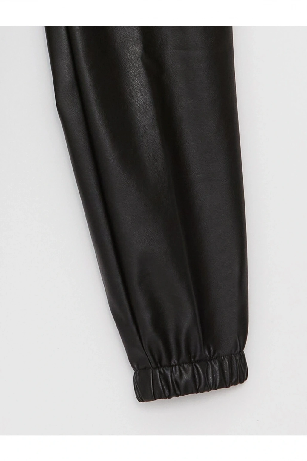 Beli Lastikli Deri Görünümlü Kız Çocuk Jogger Pantolon