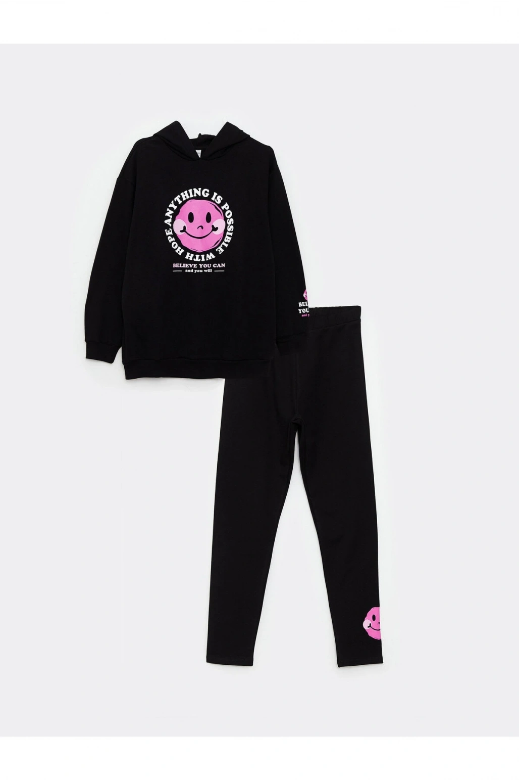 LCW Kids Kapüşonlu Baskılı Uzun Kollu Kız Çocuk Sweatshirt ve Pantolon