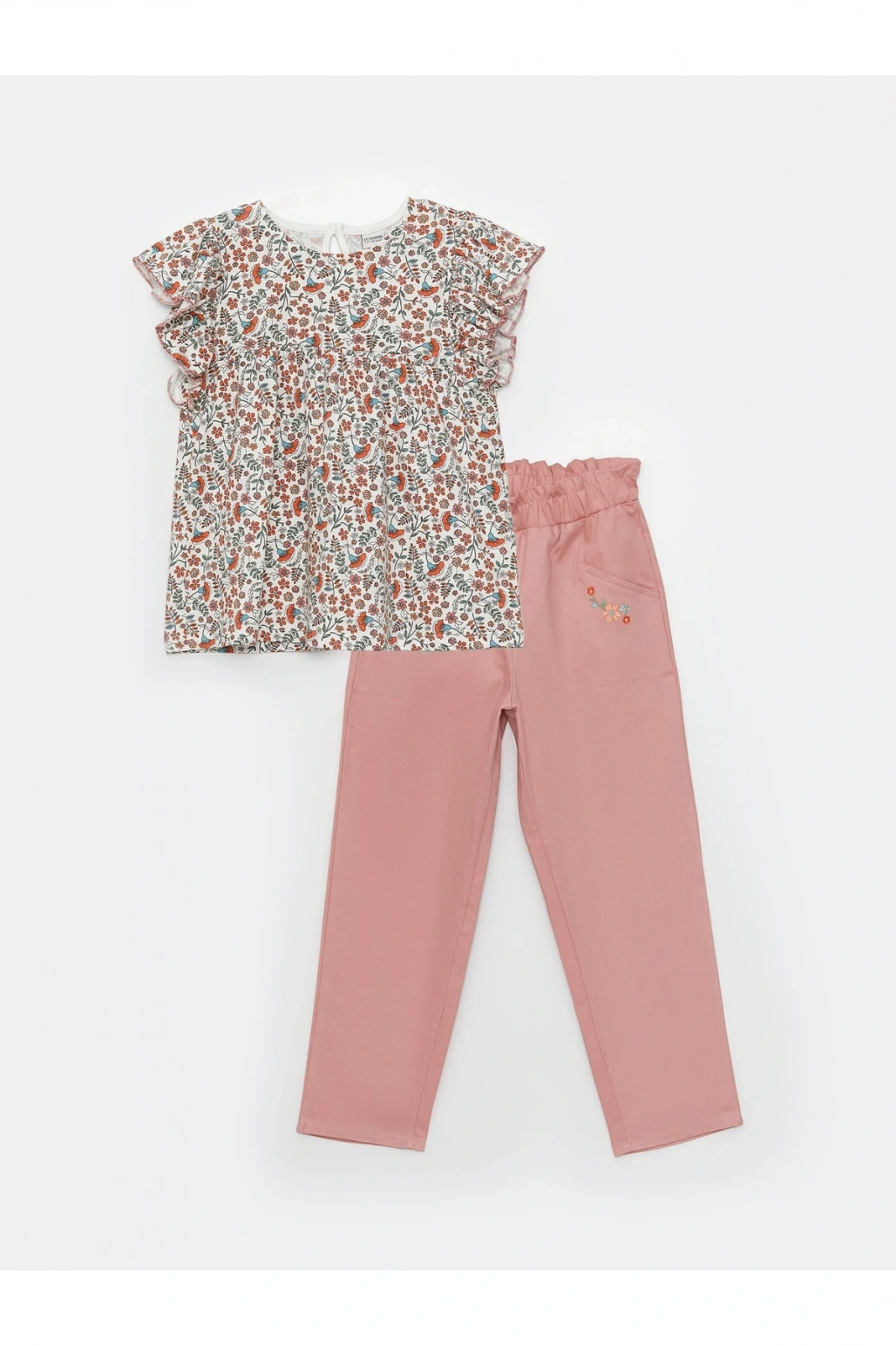 Bisiklet Yaka Desenli Kısa Kollu Kız Çocuk Bluz Ve Pantolon