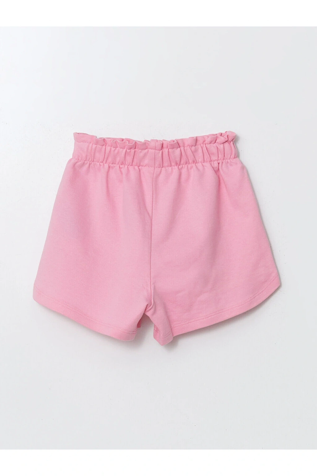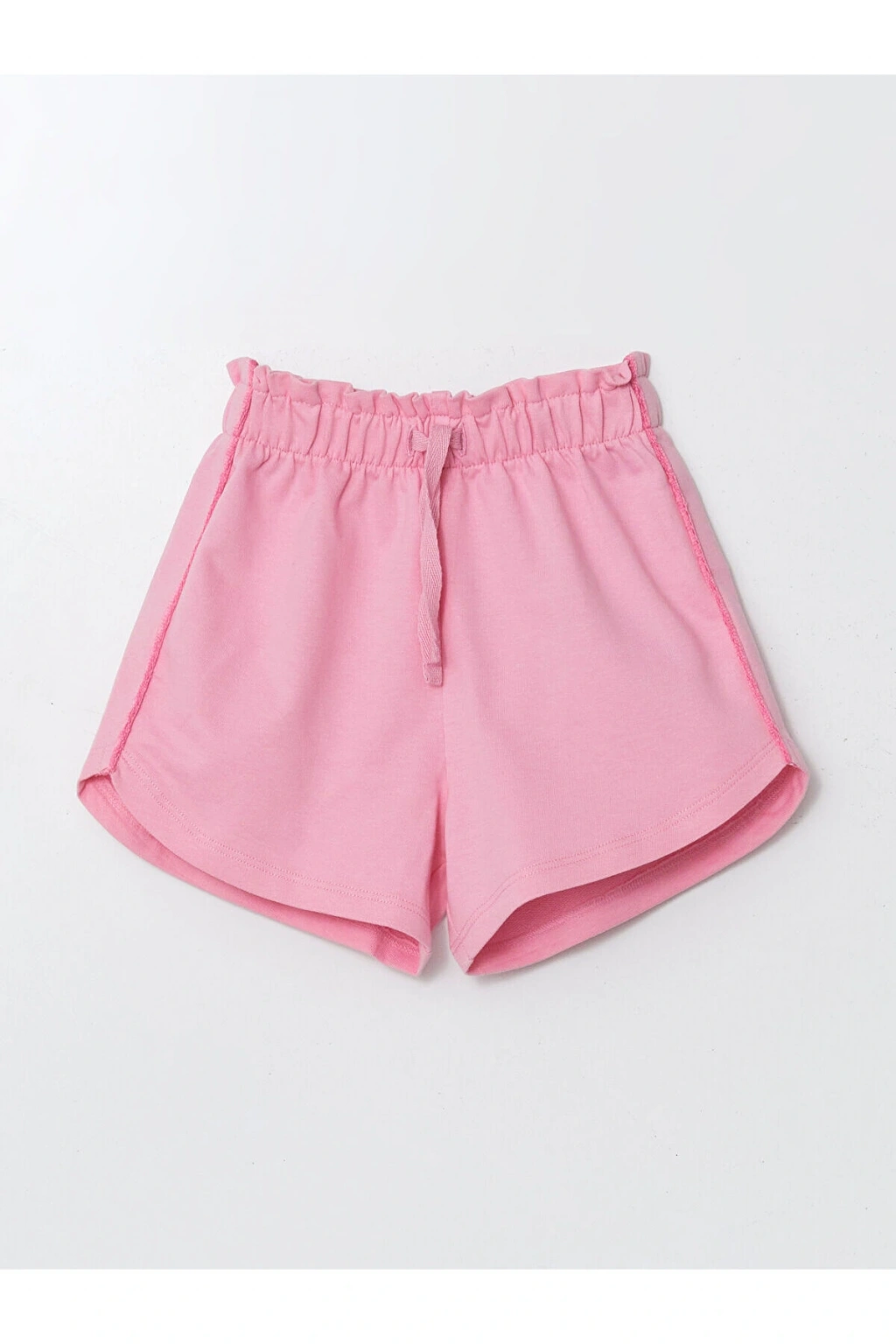 Beli lastikli ve büzgülü kız çocuk şort, waffle kumaştan üretilmiştir ve yanları dikiş detaylıdır.