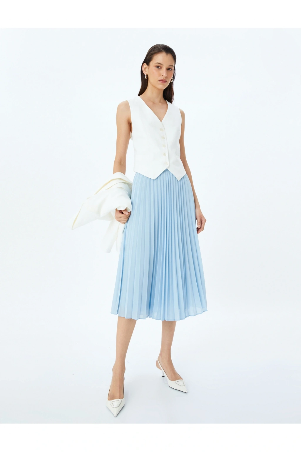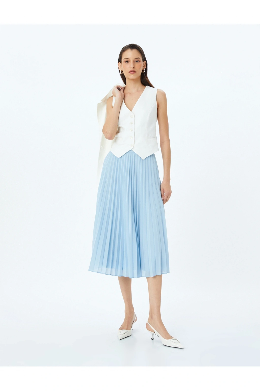 Stil ÖnerisiPileli midi etekle klasik bir görünüm yaratabilirsiniz. İnce topuklu ayakkabılar ve minimal takılarla kombininizi tamamlayarak zarif bir duruş sergileyebilirsiniz. Soğuk havalarda üzerinize alacağınız kısa bir ceketle stilinize modern bir dokunuş yapabilirsiniz.