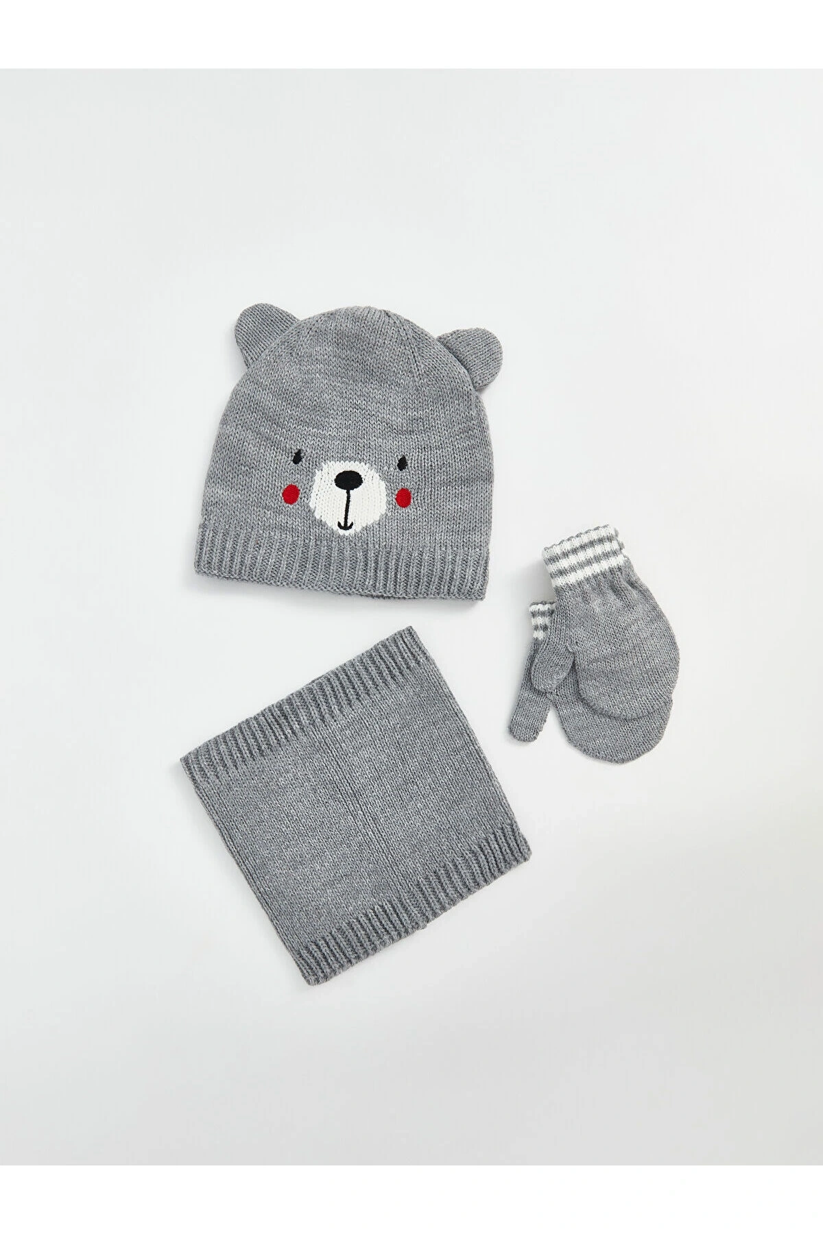 Lcwk Ayıcık Nakışlı Erkek Bebek Atkı Bere Ve Eldiven