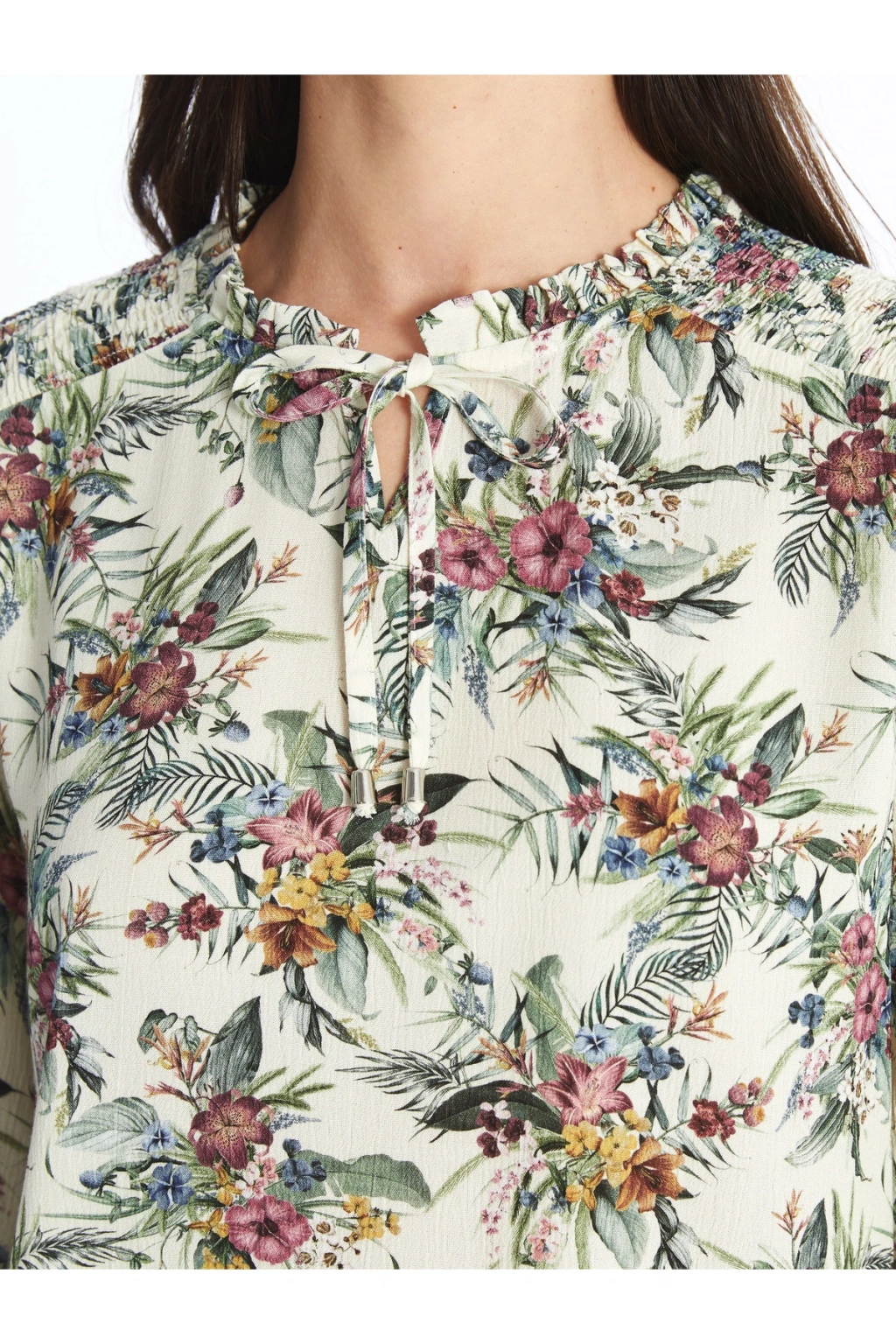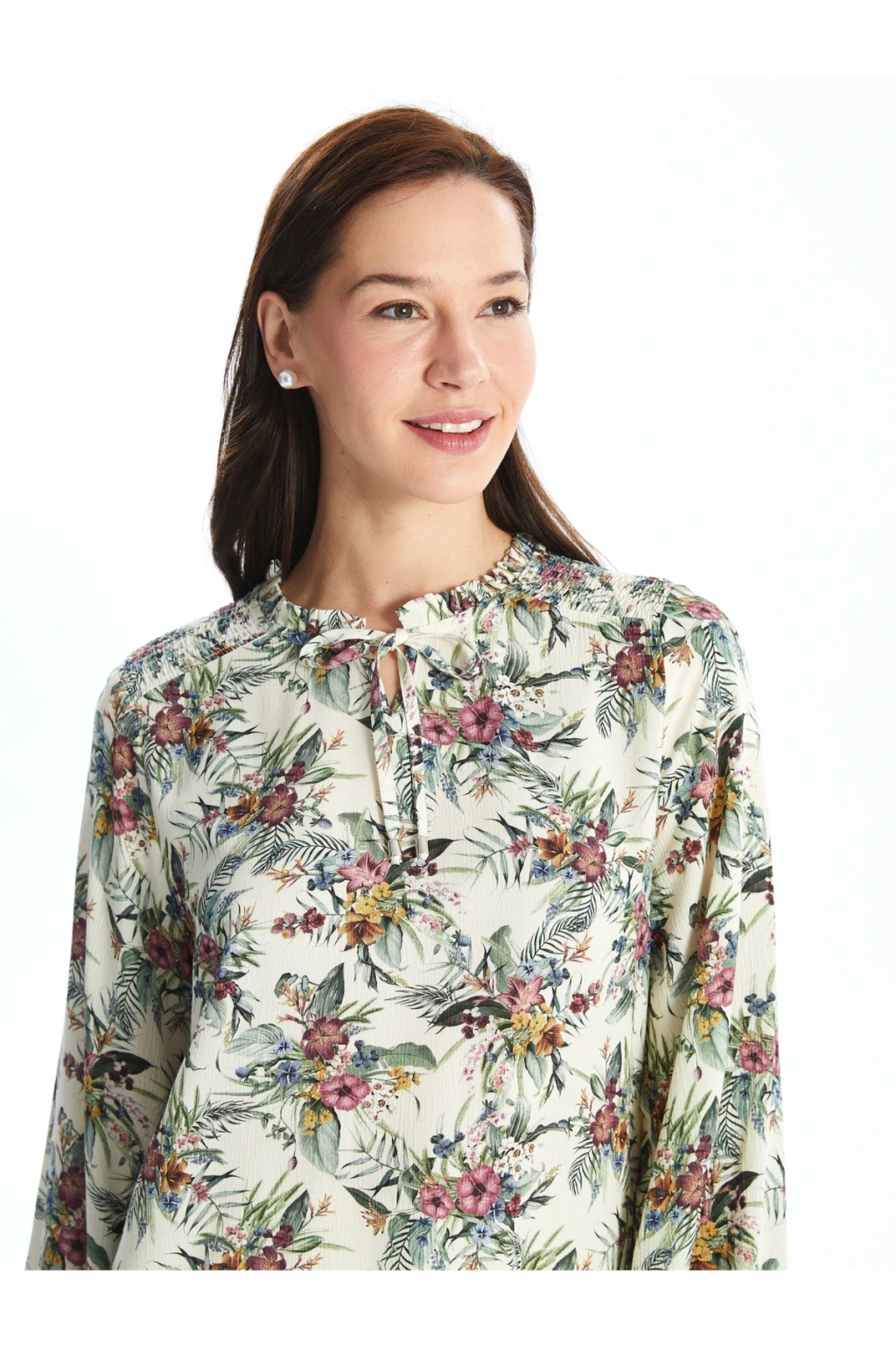 Bağlamalı yaka çiçekli uzun kollu bluz, krinkle kumaştan üretilmiştir ve yumuşak bir dokuya sahiptir. ; Bilek kısmında bulunan lastikler sayesinde bileklerinizi sararak düzgün bir görünüm sunar. ; Ürün İçeriği ve Özellikleri Ürün İçeriği: Göğüs: 85 cm Bel: 60 cm Basen: 90 cm Boy: 179 cm Manken 38 beden ürün giyiyor. ; Ürün İçeriği: Ürün Özellikleri: Satıcı: LC Waikiki Marka: LCW Grace Ürün Tip: Bluz Cinsiyet: Kadın Kalıp: Standart & Regular Kol Boyu: Uzun Kollu Kalınlık: İnce Koleksiyon: Bayram Koleksiyonu Desen: Çiçekli Kumaş: Krinkle Yaka: Bağlamalı Yaka;