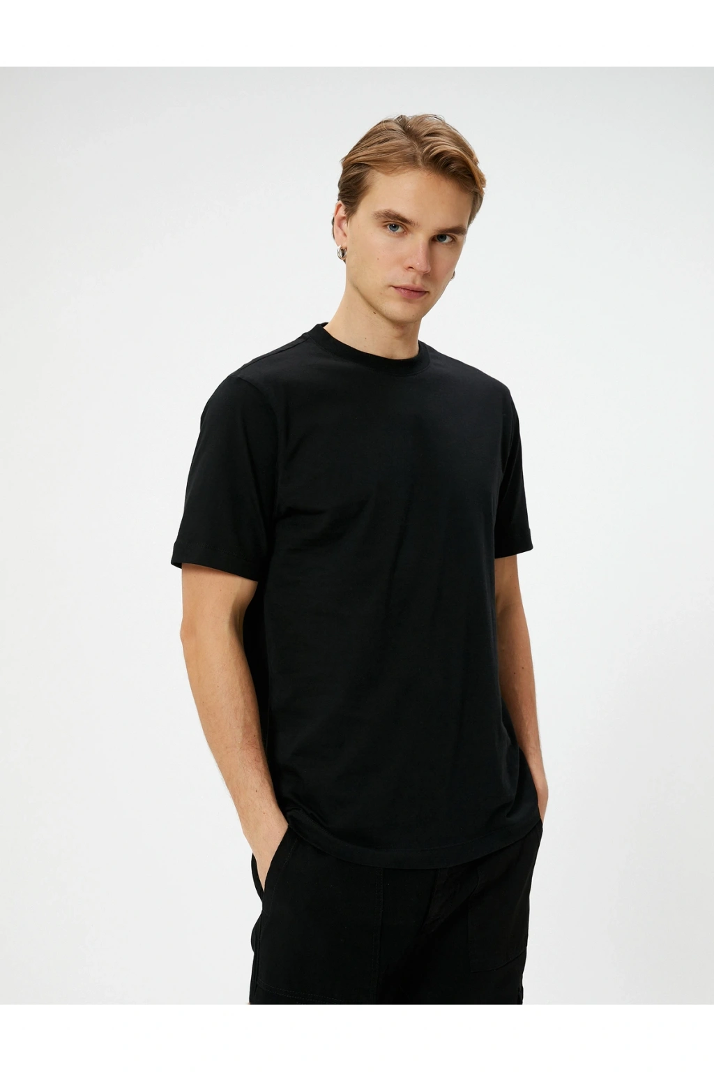 Bisiklet yaka basic tişörte kayıtsız kalamayacaksınız.; Koton erkek tişört modelleri ile farklı siluetlere ve günün farklı saatlerine kolaylıkla adapte olun! | Model Boy: 189 | Model Kalça: 96 | Model Üst: 76 | Model Bel: L | Model Göğüs: 98 | Model Jean: 30/32