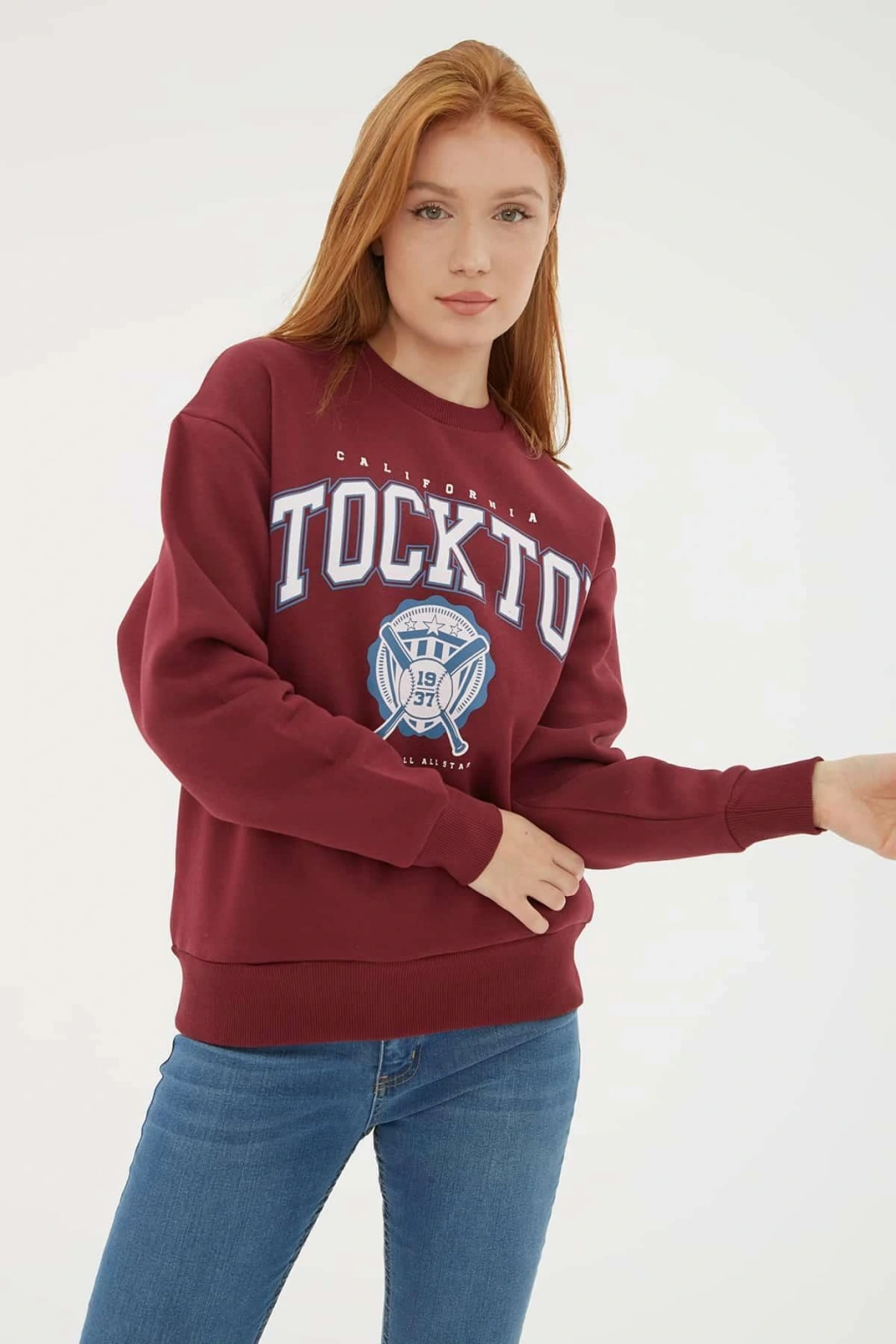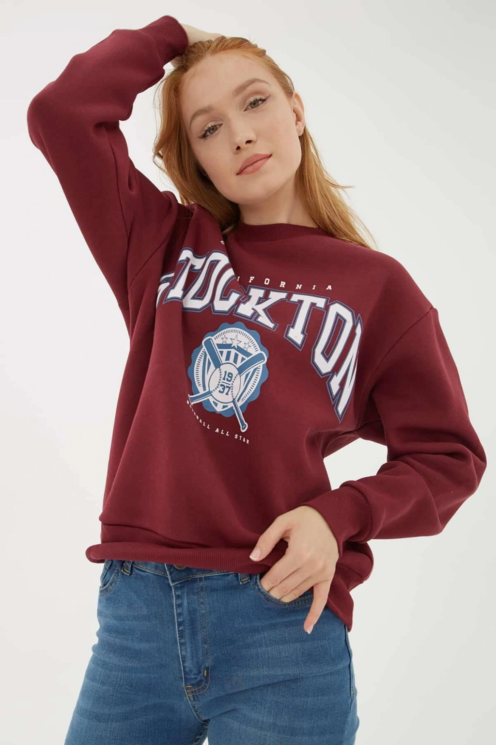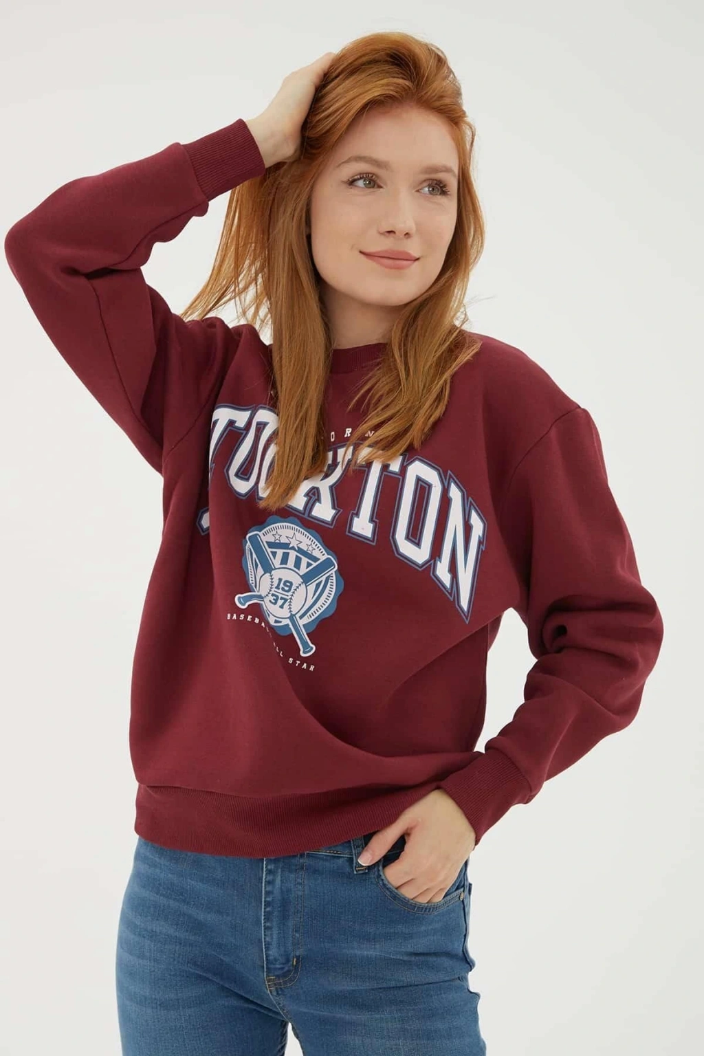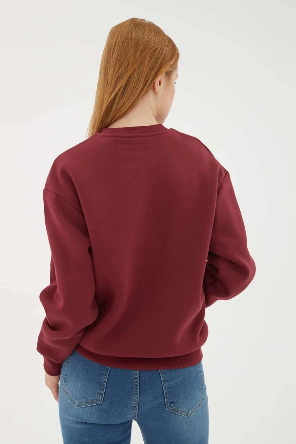 Sweatshirt Şardonlu İşlemeli Bisiklet Yaka Pamuklu