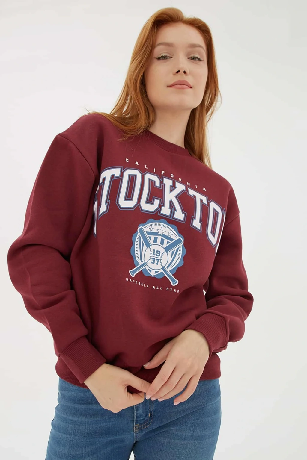 Baskılı Kapşonlu Sweatshirt Şardonlu