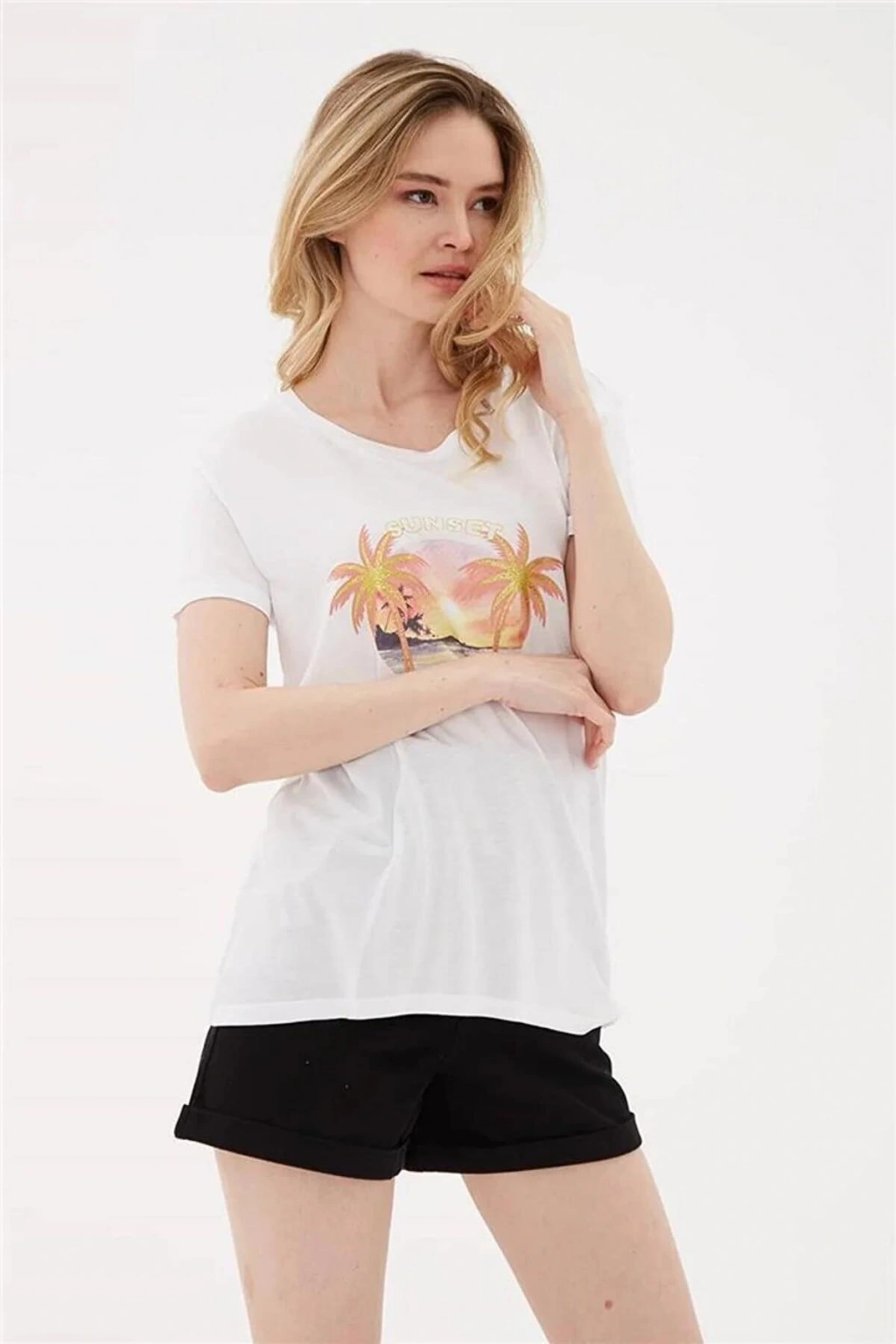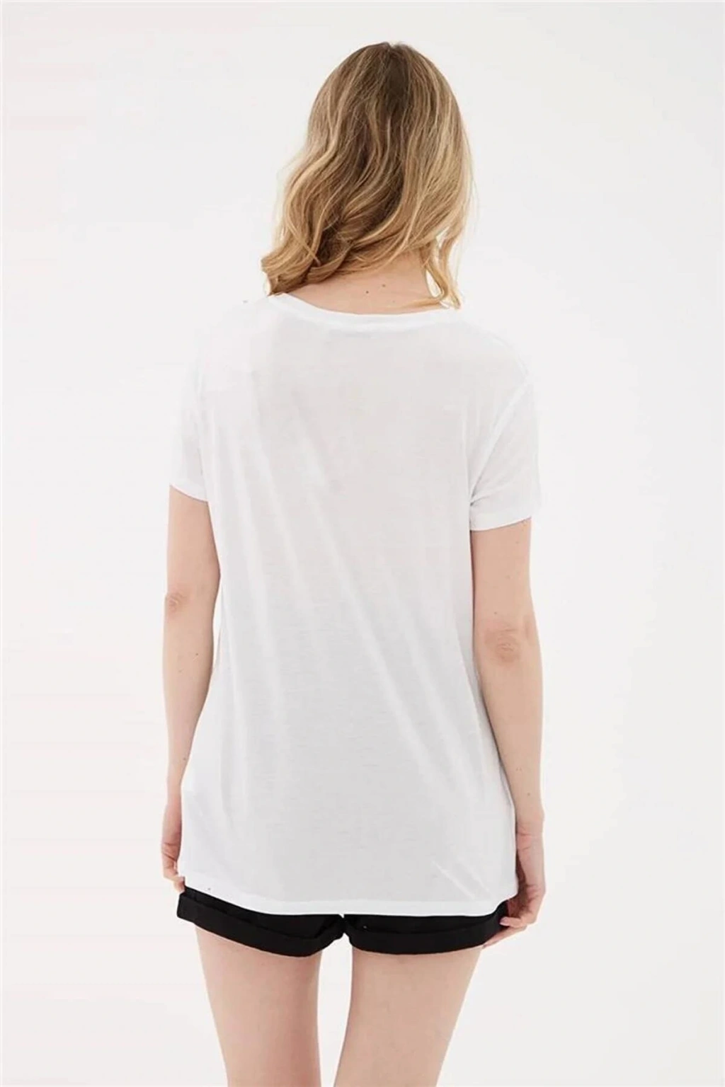 LCWAIKIKI Classic Beyaz Bisiklet Yaka Kadın Tişört