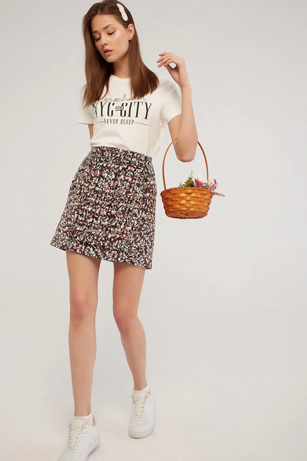 %100 Pamuk Bisiklet yaka, normal kalıp, standart fit, kısa kollu, baskılı t-shirt. ; Model Ölçüleri:Boy:1.76, Göğüs:82, Bel:61, Basen:91 Mankenin üzerindeki ürün S/36 bedendir. ; Yıkama Talimatı: Ürünün iç etiket bölümünde gerekli yıkama talimatı yer almaktadır.;