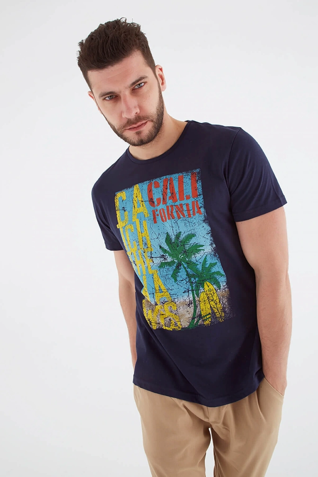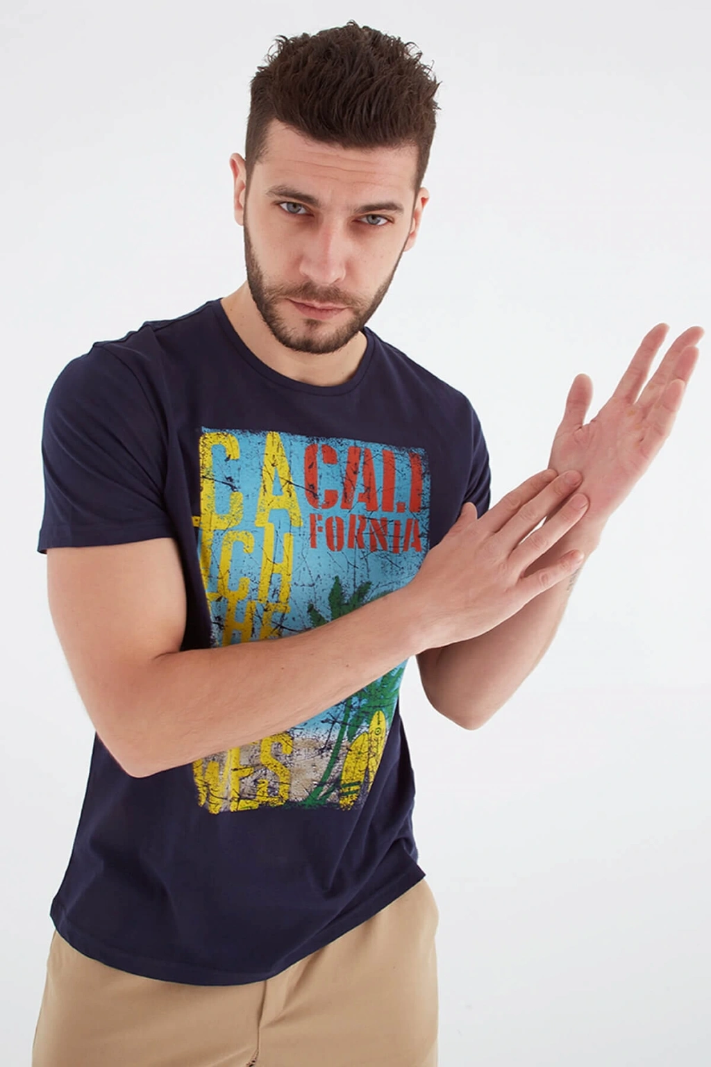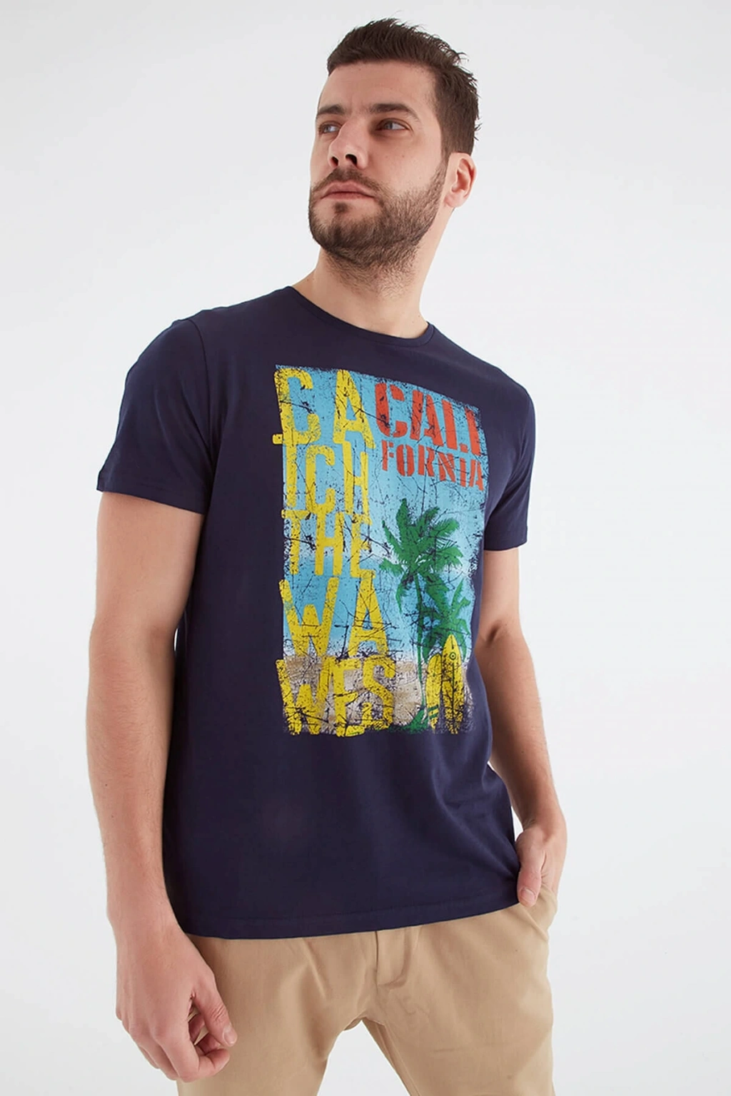 Her yaş grubuna hitap eden, lacivert renkteki baskılı t; shirt ile tarzınızı yansıtın; Kısa kollu tasarımı sayesinde rahat hareket etme özgürlüğü sunar; Dokuma kumaş yapısı, dayanıklılığı ve konforu bir arada garanti eder; Regular kalıp ile vücudu saran ancak sıkmayan ideal oturumu sağlar; Baskılı deseniyle dikkat çekici bir görünüm kazandırırken, basic silueti günlük kullanım için mükemmel bir seçimdir; %100 pamuk materyal bileşeni sayesinde cildinize nefes aldırır ve yumuşak bir dokunuş sunar;