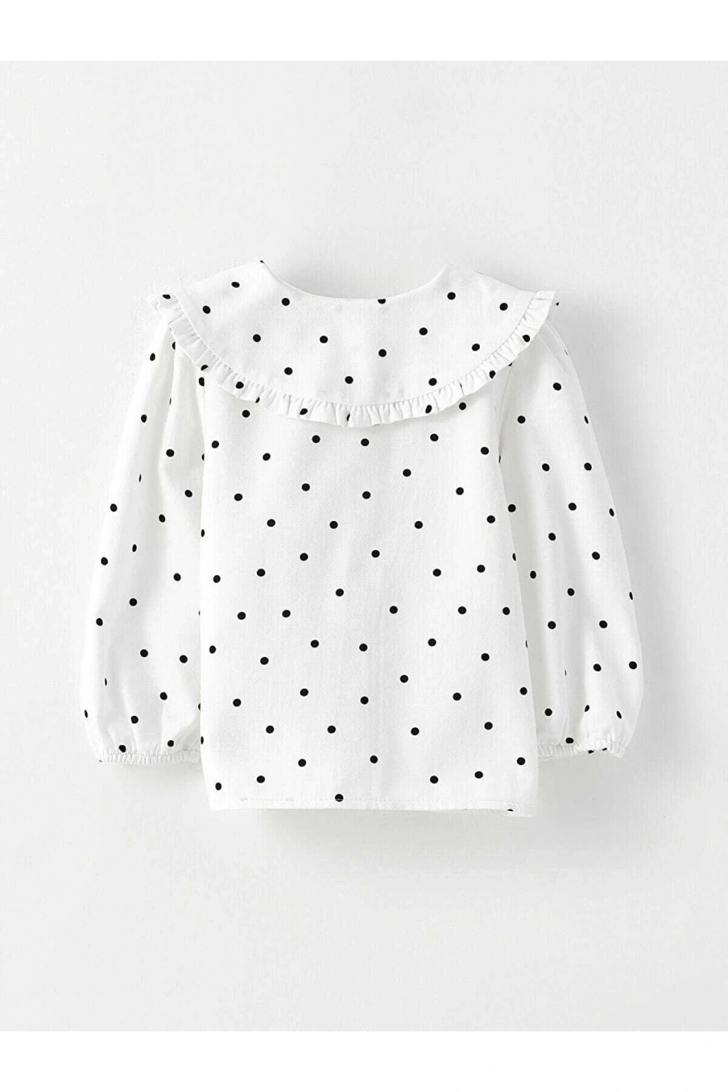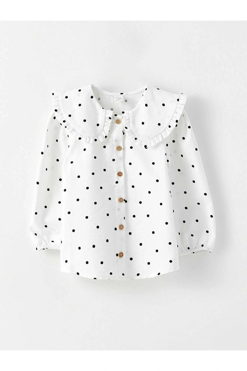Bebe Yaka Uzun Kollu Desenli Pamuklu Kız Bebek Gömlek