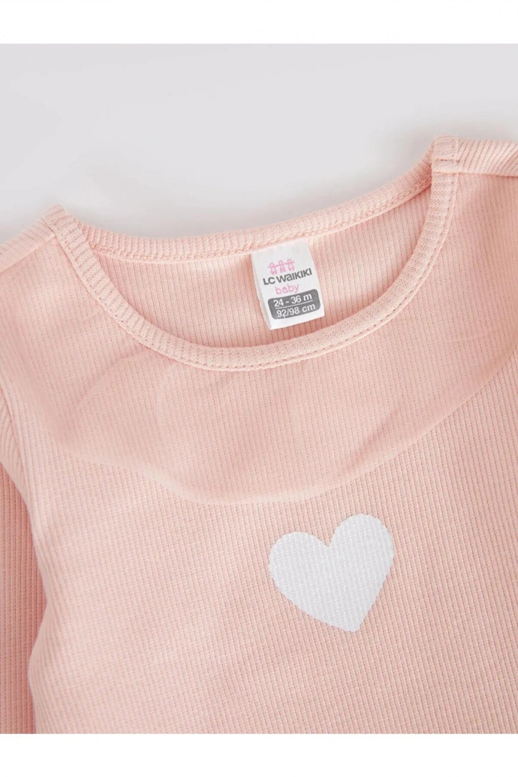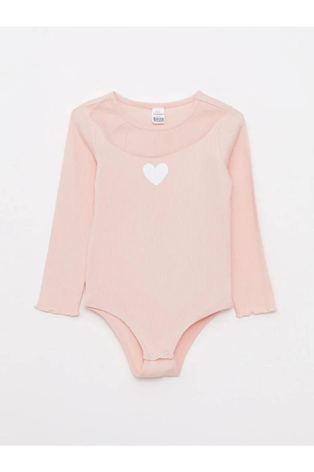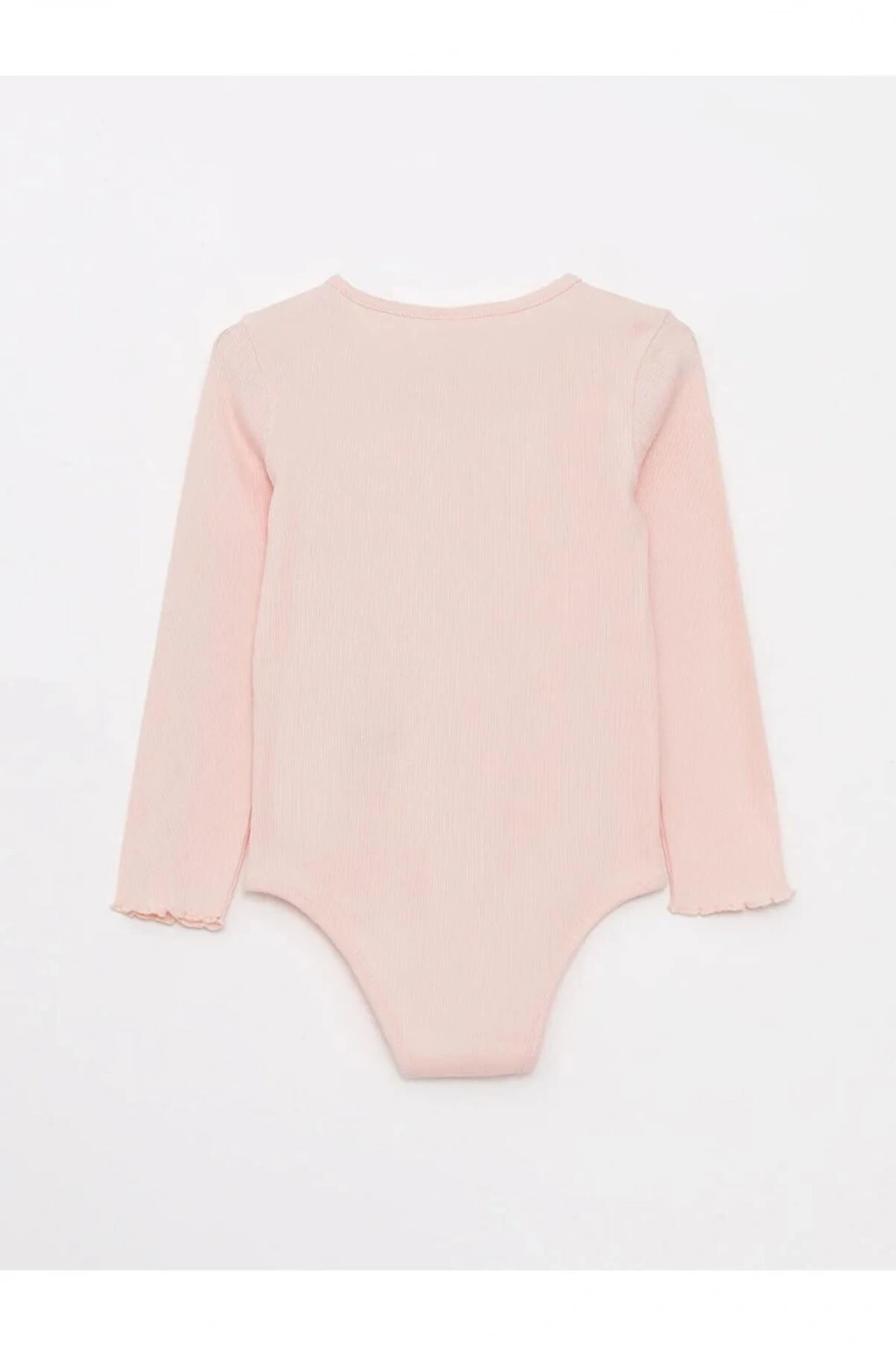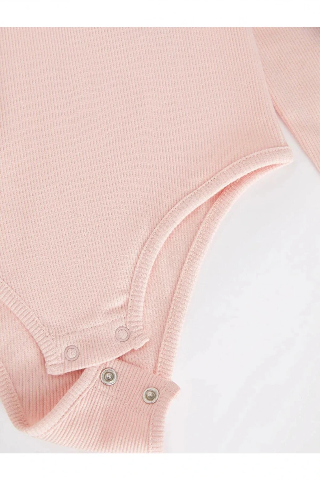 LCW baby Pembe Bisiklet Yaka Uzun Kollu Kız Bebek Çıtçıtlı Body