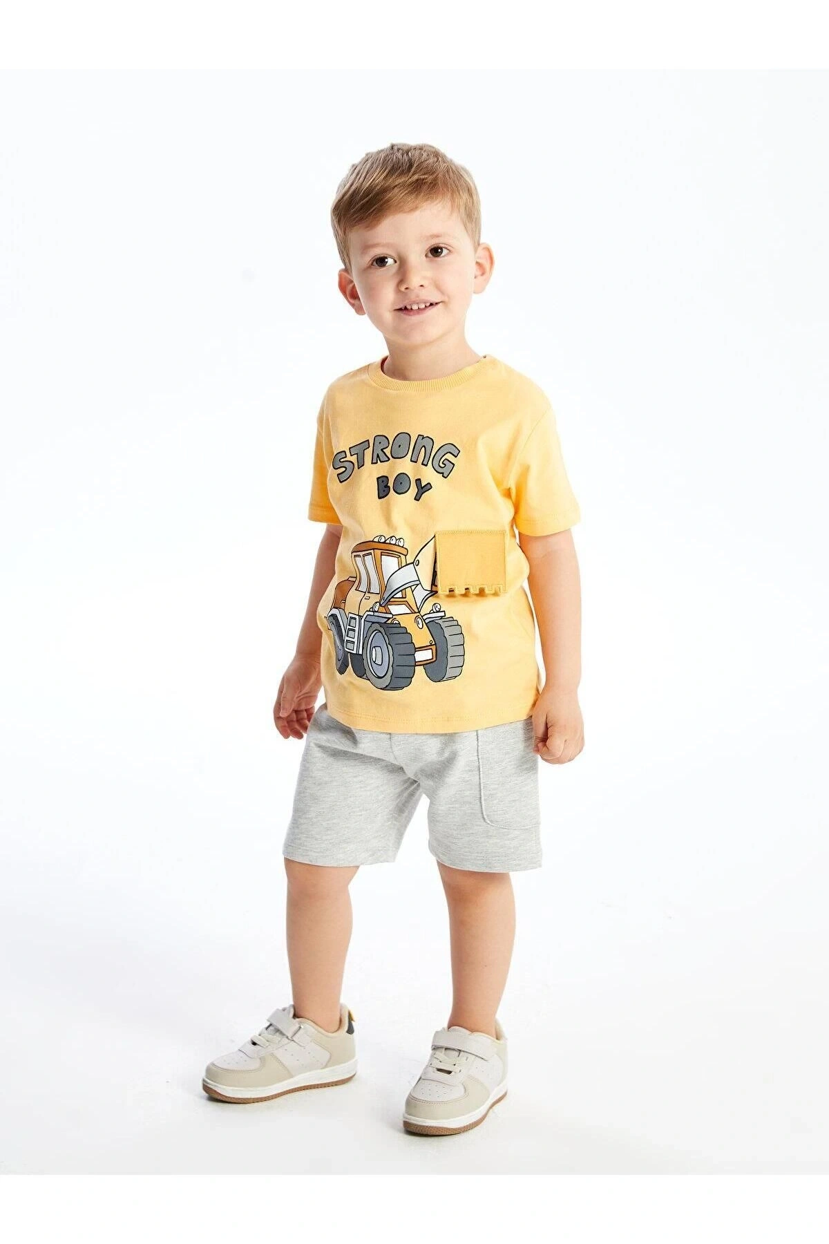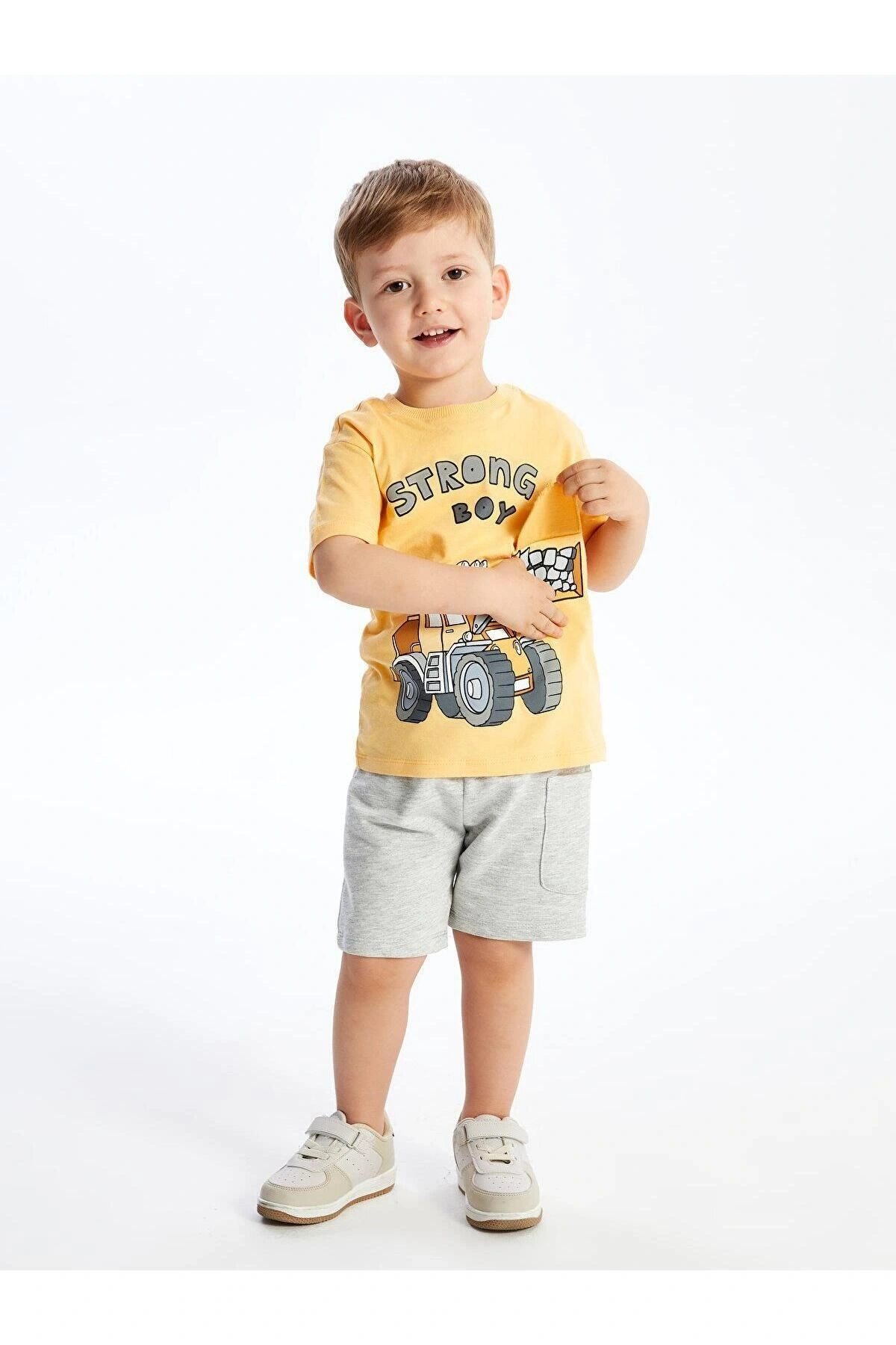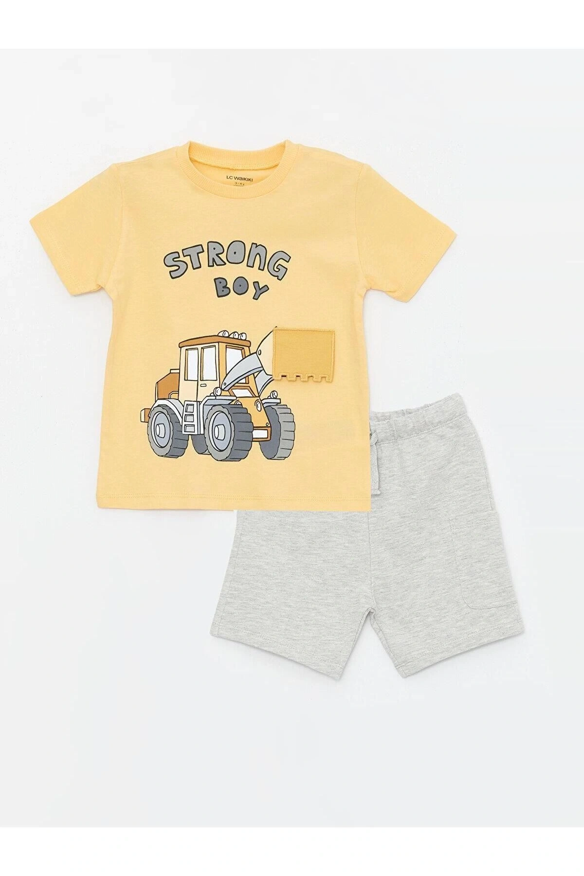LCW baby Bisiklet Yaka Baskılı Erkek Bebek Tişört ve Şort 2'li Takım