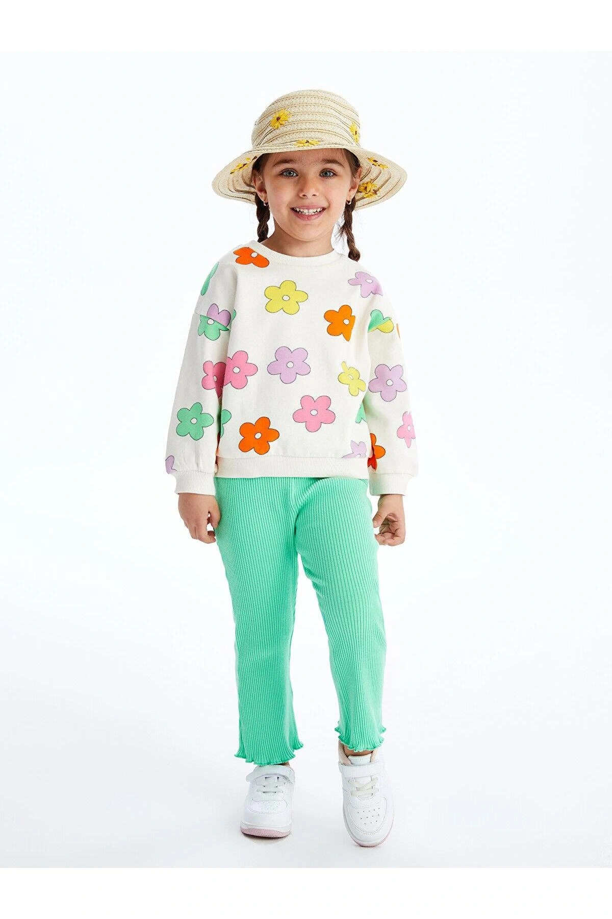 LCW baby Bisiklet Yaka Uzun Kollu Baskılı Kız Bebek Sweatshirt ve Tayt 2'li Takım