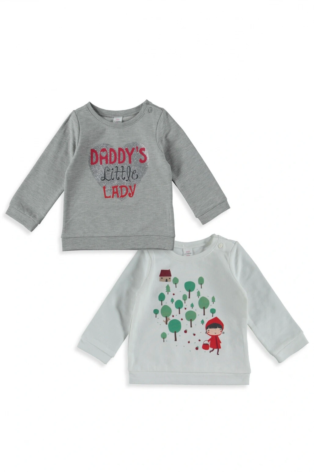 LCW baby Bisiklet Yaka Uzun Kollu Baskılı Kız Bebek Sweatshirt ve Tayt 2'li Takım