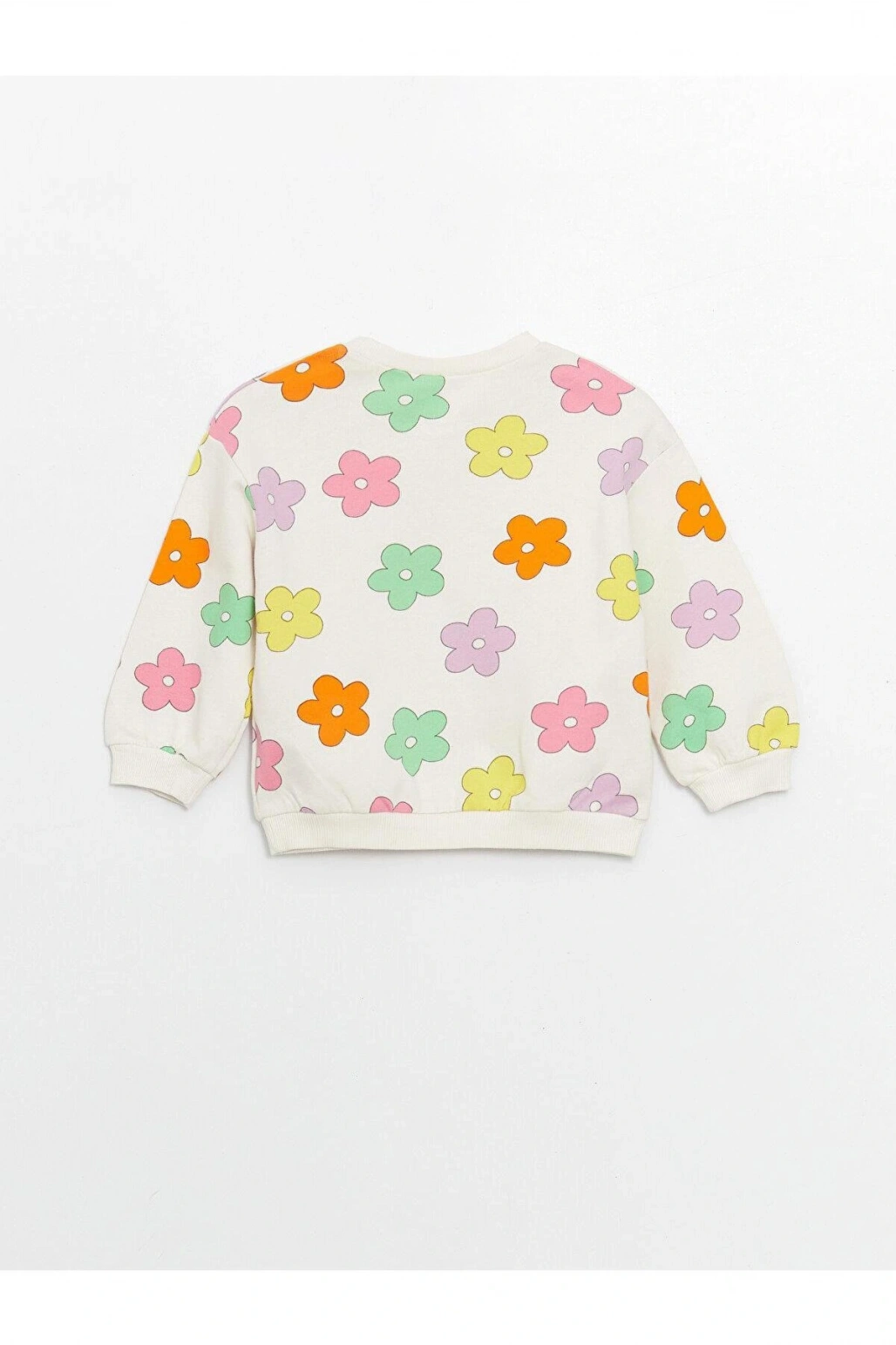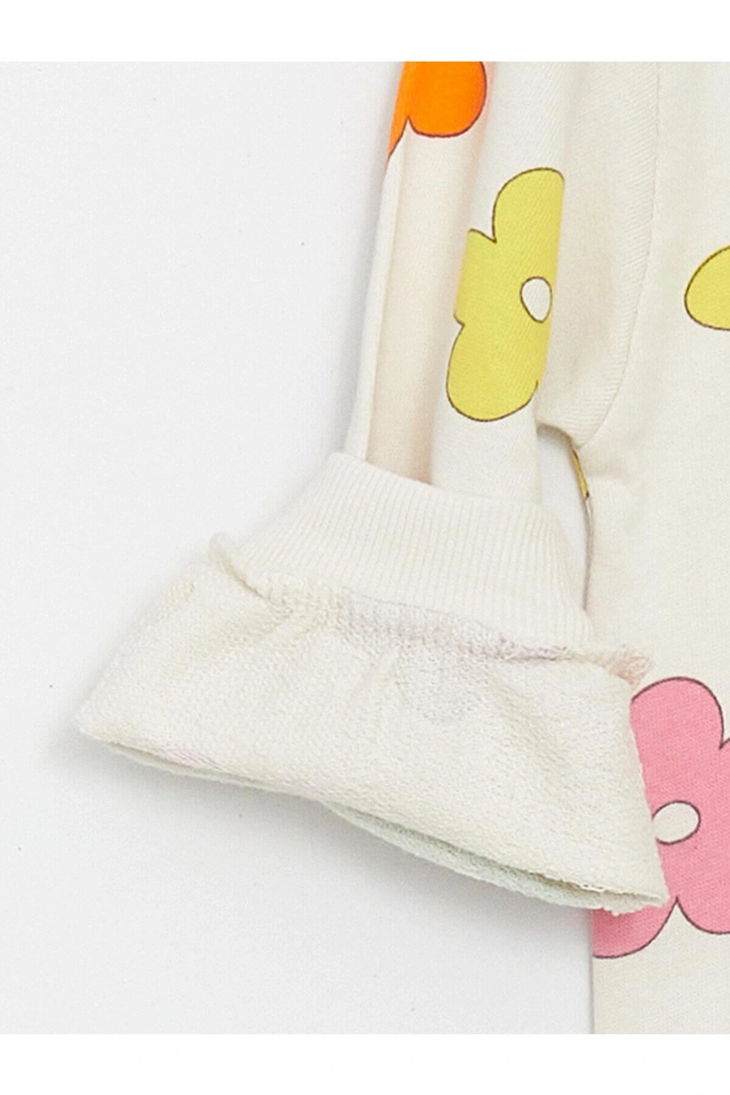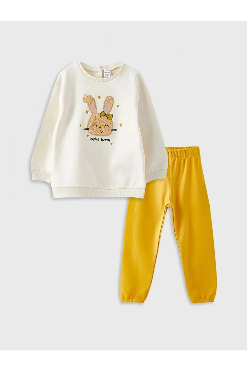 LCW baby Ekru Bisiklet Yaka Uzun Kollu Baskılı Kız Bebek Sweatshirt ve Pantolon 2'li Takım