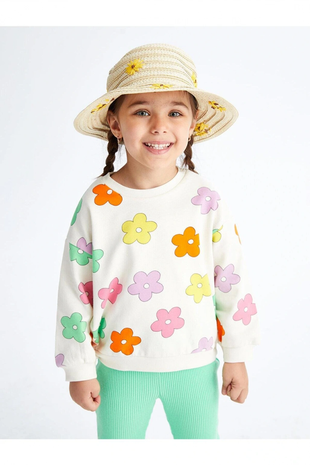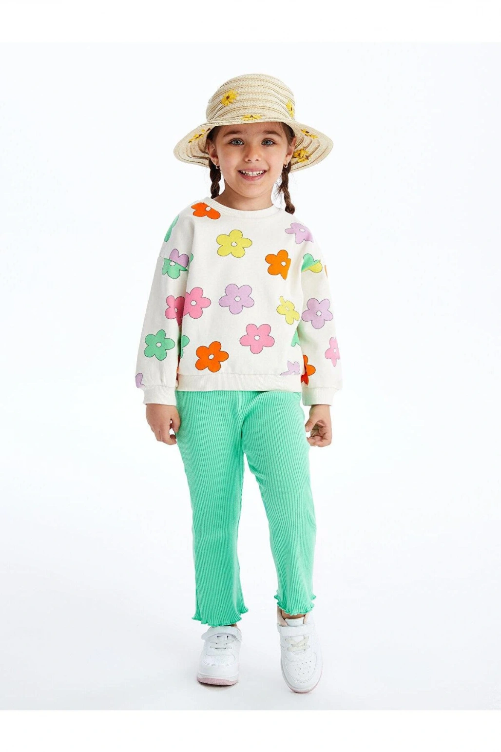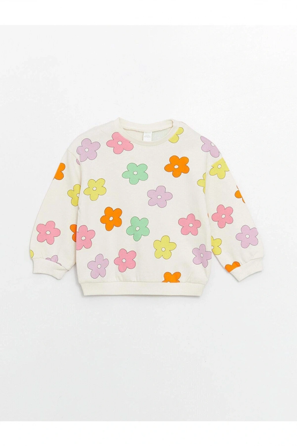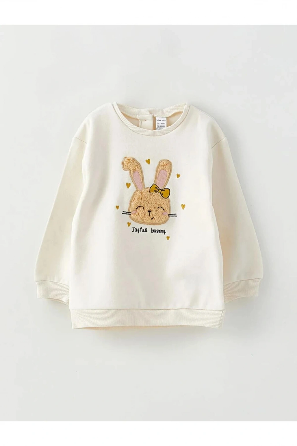 LCW baby Ekru Bisiklet Yaka Uzun Kollu Baskılı Kız Bebek Sweatshirt ve Pantolon 2'li Takım