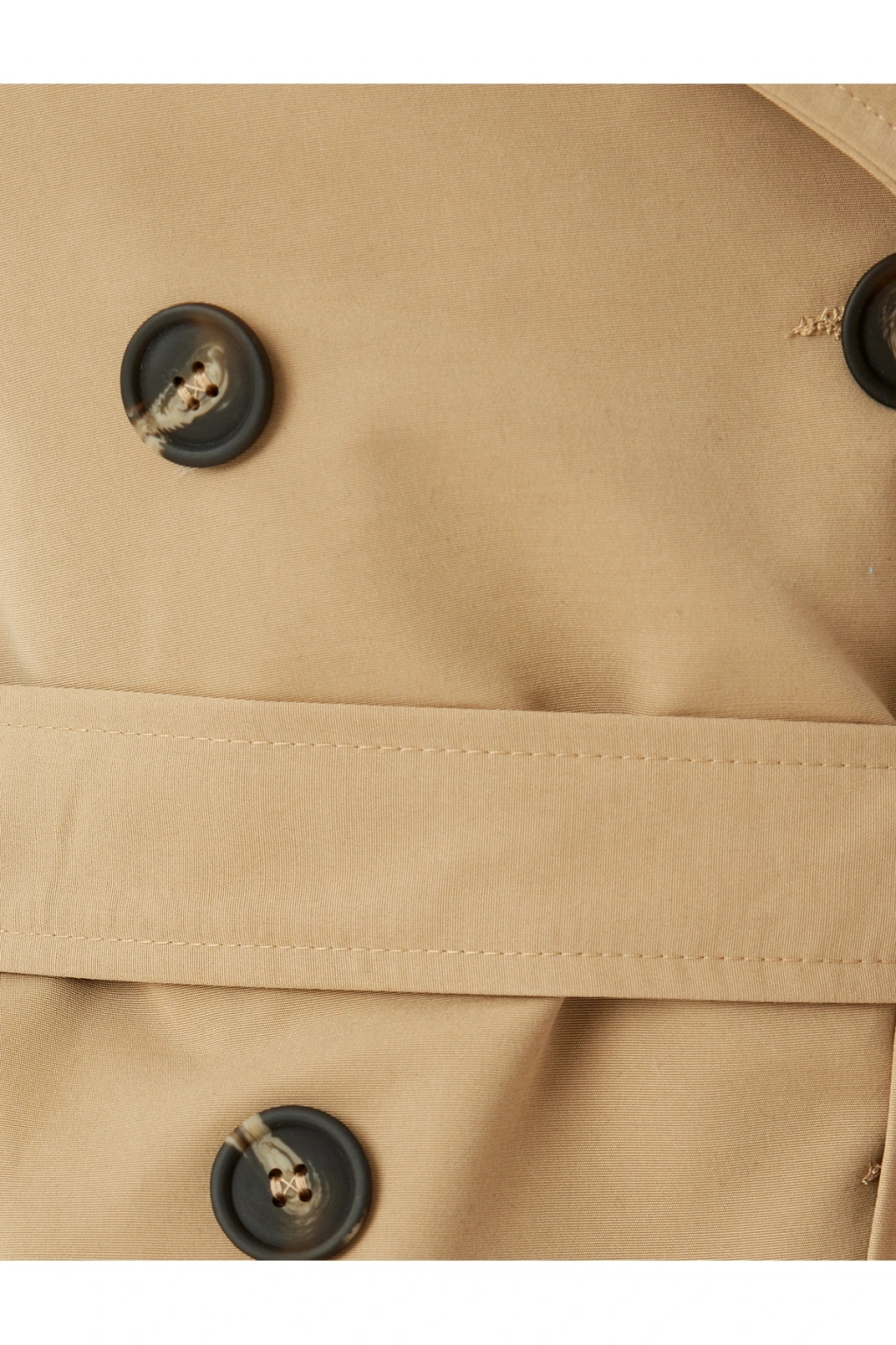 Long-sleeve double-breasted lapel collar pocket detail belted buttoned trench coat.; | Model Boy: 180 | Model Kalça: 93 | Model Üst: 64 | Model Bel: S | Model Göğüs: 85 | Model Jean: 27/32