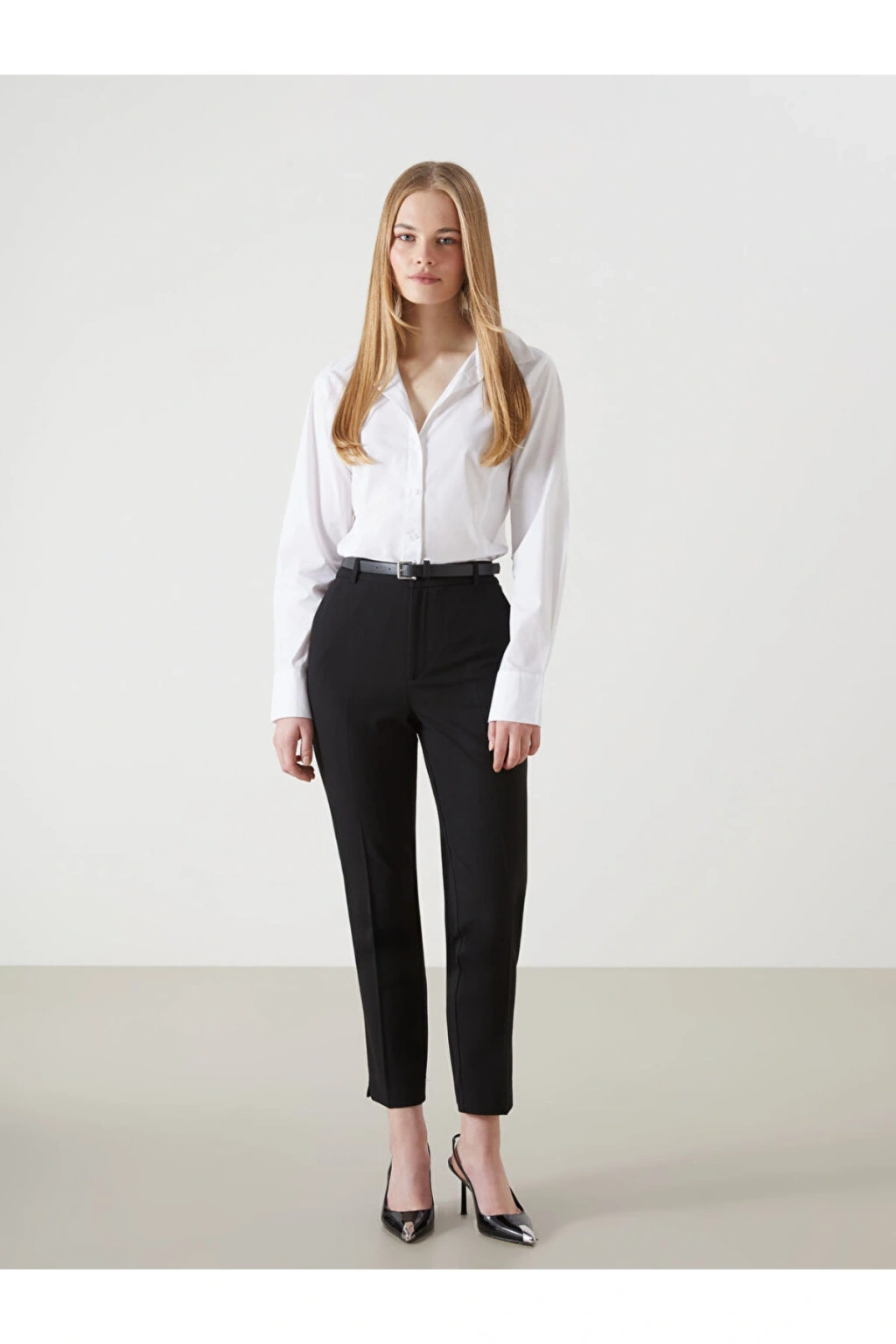 Beli kemerli havuç kesim düz pantolonu, ofisten sokak modasına kadar her alanda rahatlık ve stil sunar. İki yandan cepli tasarımı sayesinde küçük eşyalarınızı taşıyabilirsiniz, kemer detayı ile belinizi zarifçe sarar.