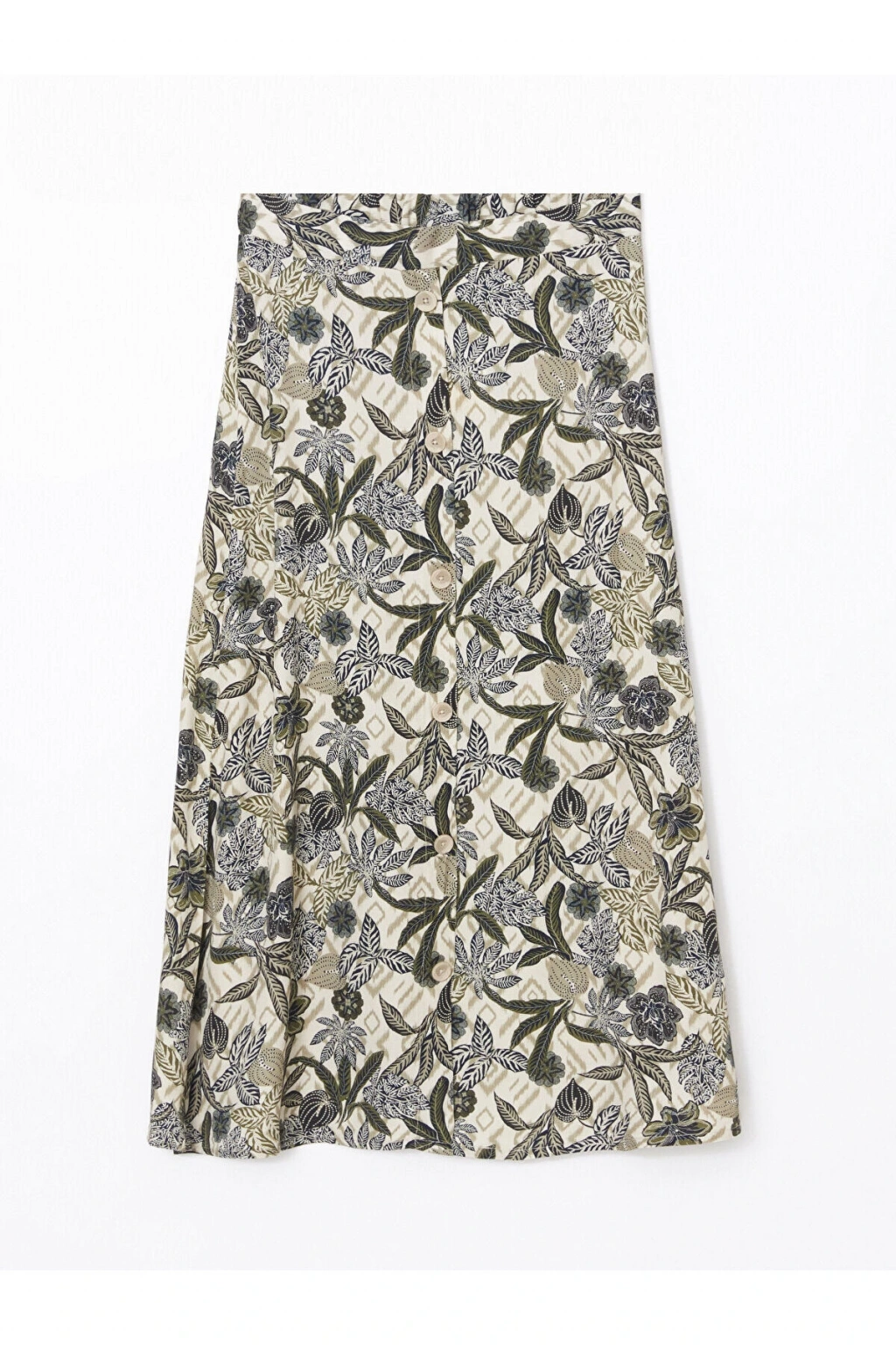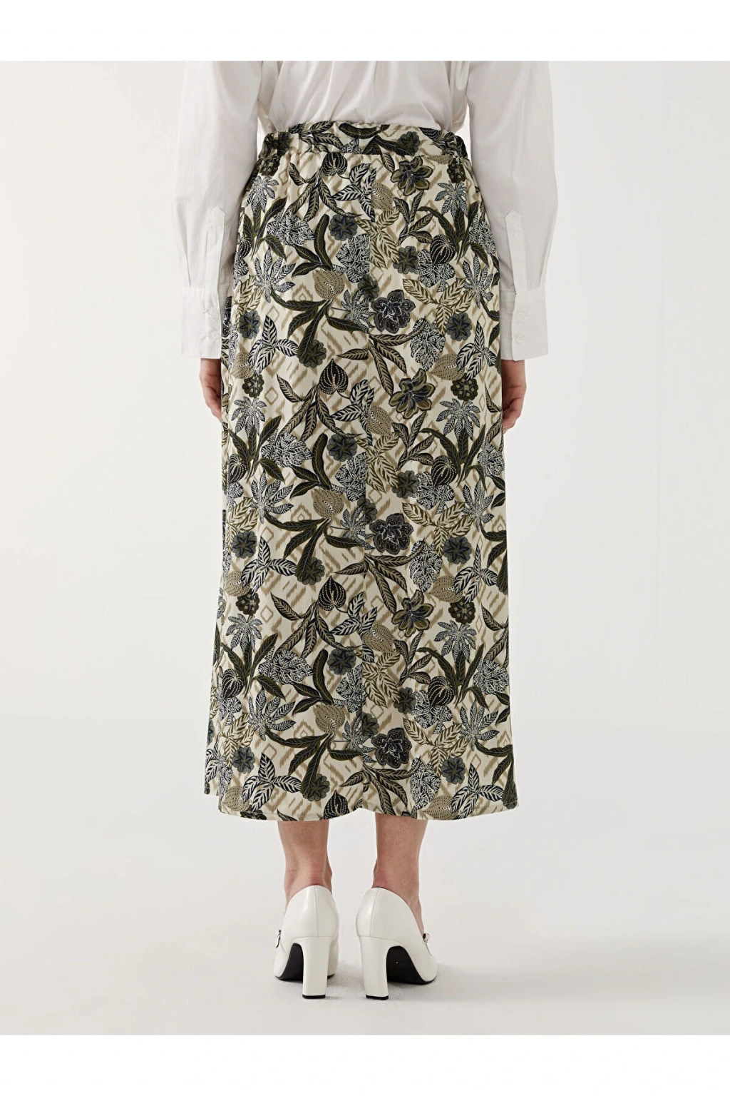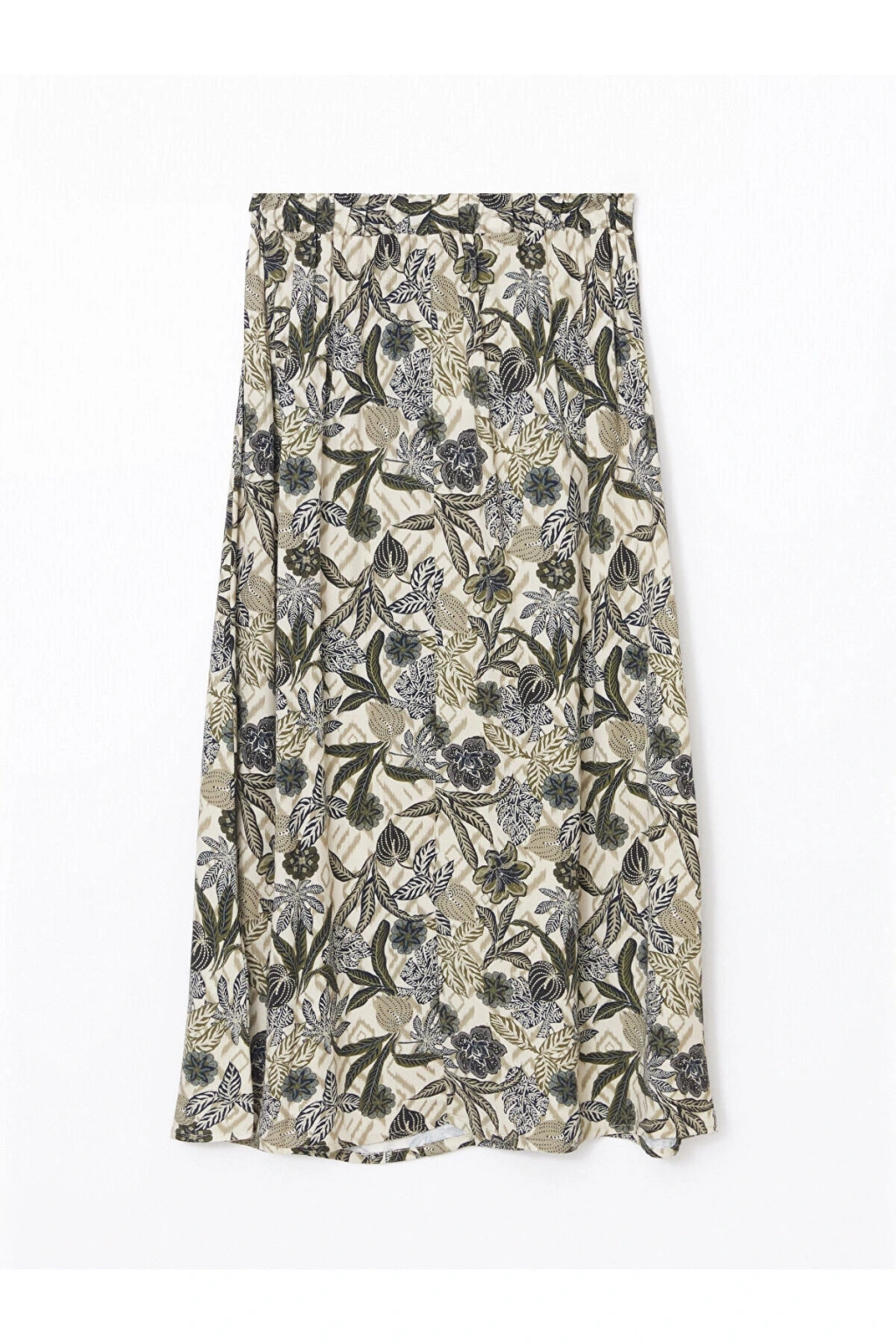 LCWAIKIKI Classic Yeşil Beli Lastikli Desenli Şifon Kadın Pileli Etek