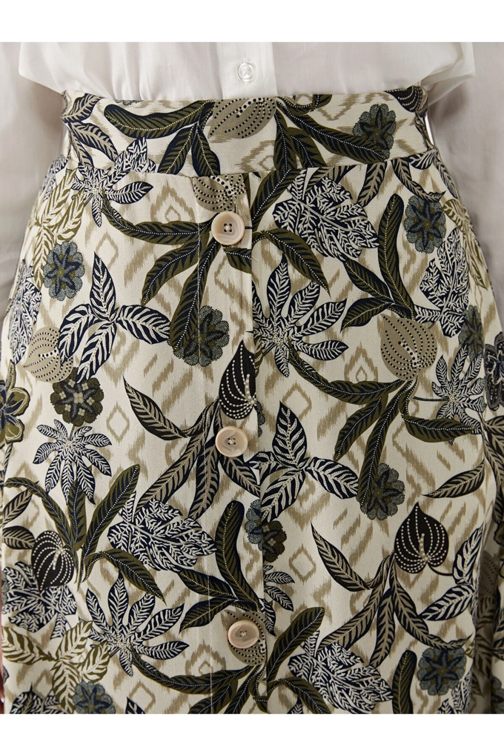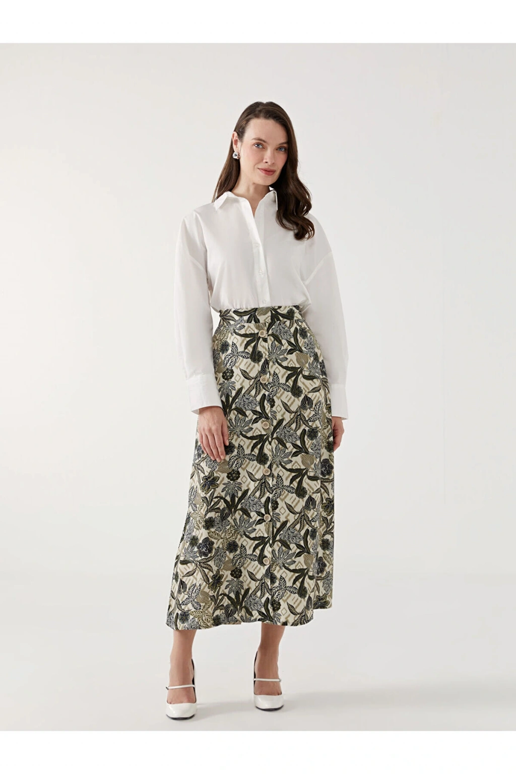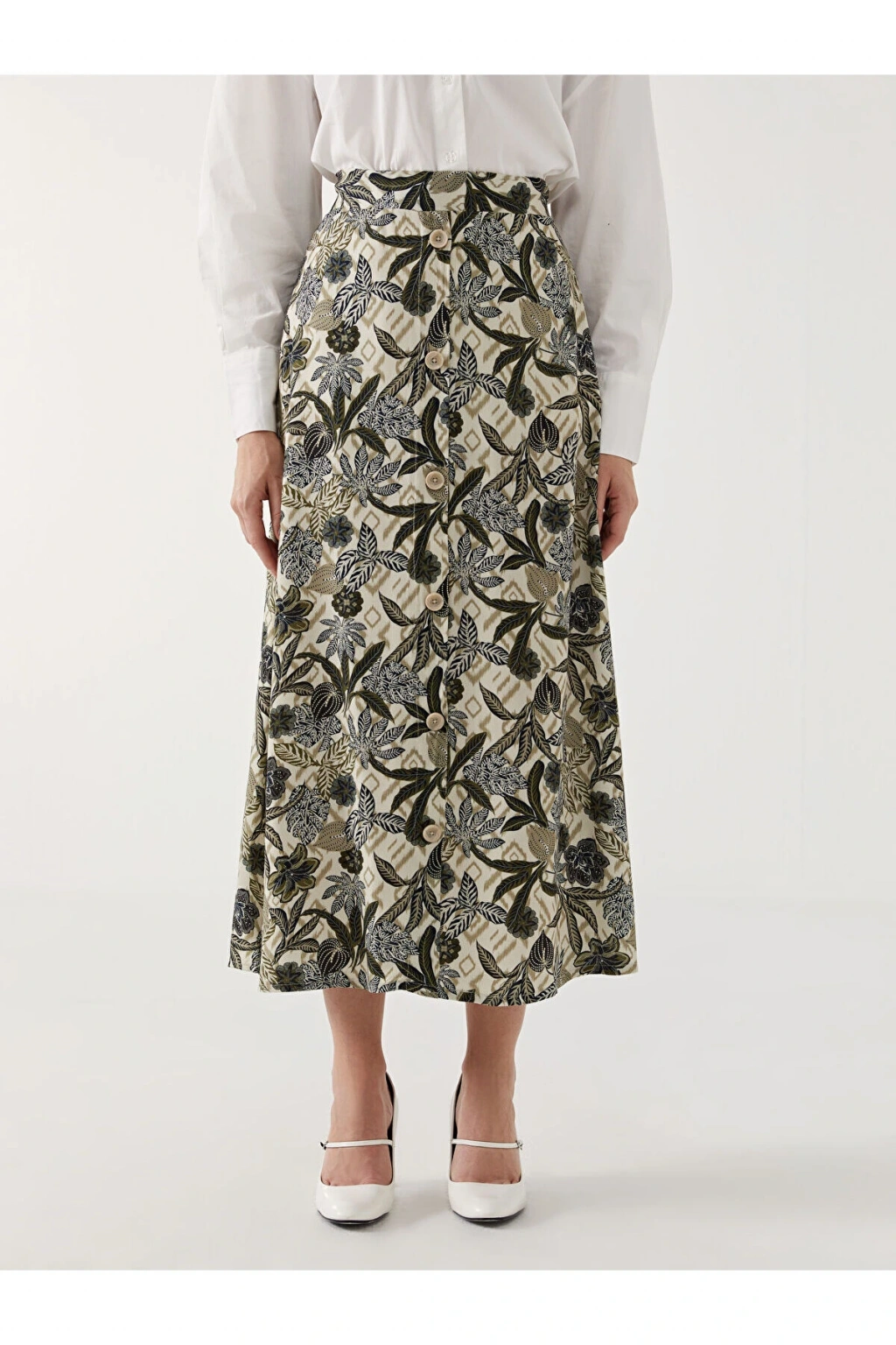 LCWAIKIKI Classic Yeşil Beli Lastikli Desenli Şifon Kadın Pileli Etek