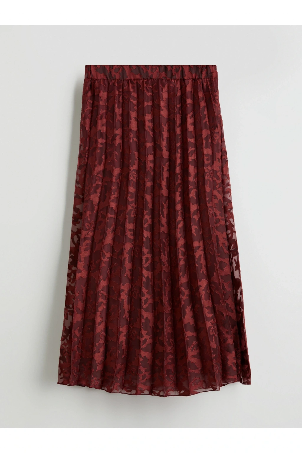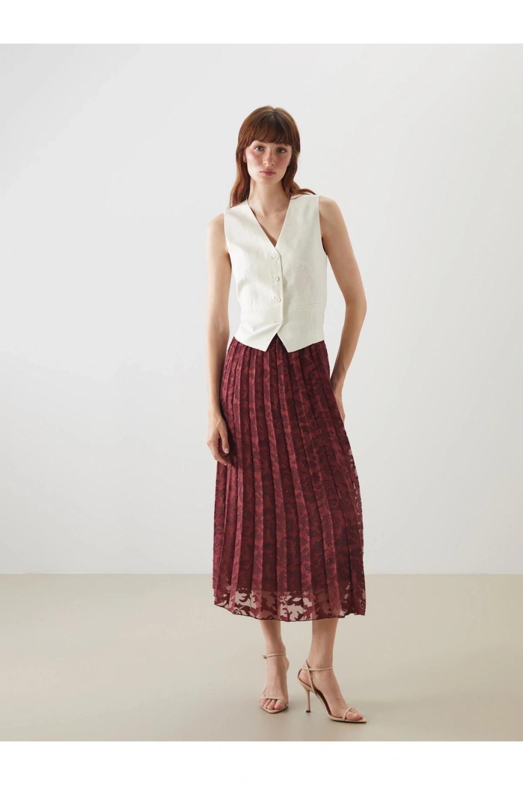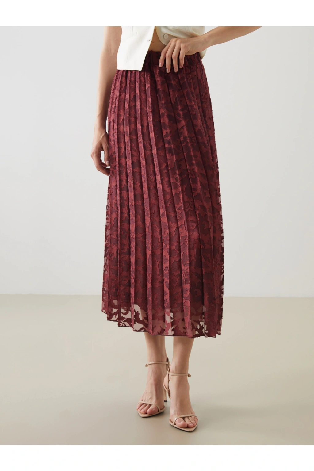 Beli lastikli desenli pileli etek, polyester kumaştan üretilmiştir.; Bu sayede teri çekmez ve hızlı kurur.; Belinde bulunan lastik detayı sayesinde giyinme kolaylığı sağlar.