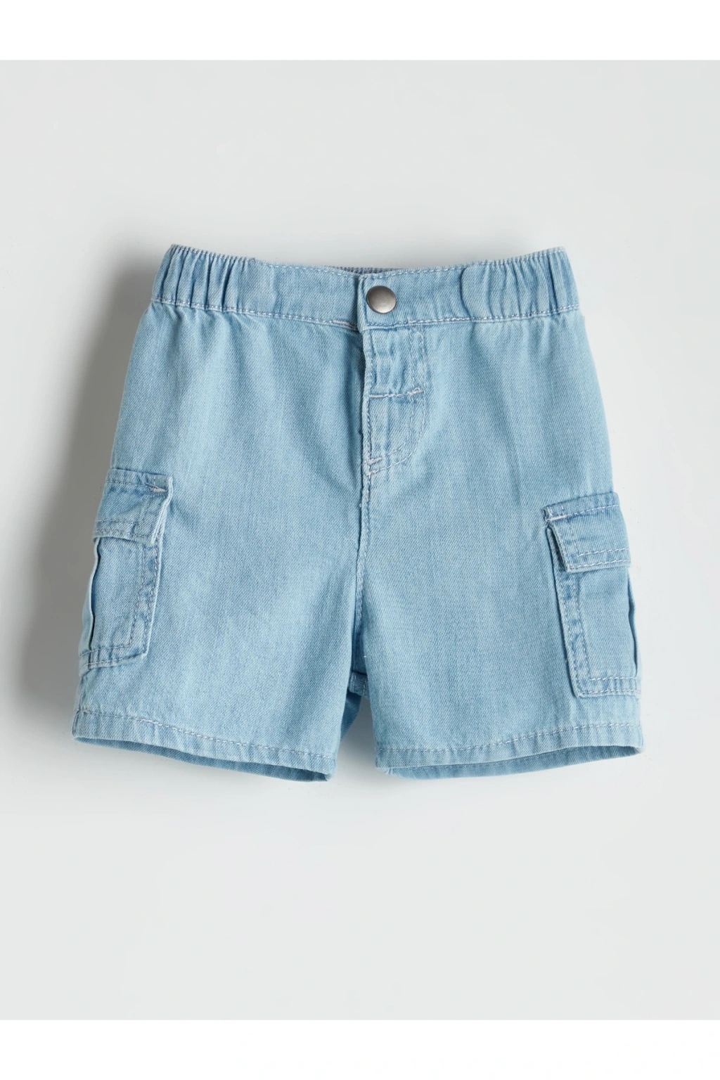 Klasik jean şıklığını bebeklere özel konforla buluşturan bu şort, esnek beli sayesinde kolayca giydirilip çıkarılabilir.