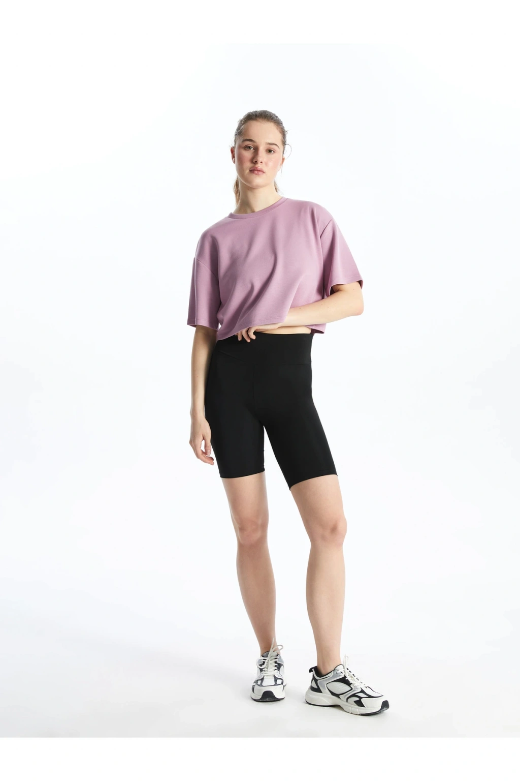Beli lastikli kadın şort tayt, esnek yapısıyla vücudu mükemmel bir şekilde sarar ve rahat hareket imkanı sunar.; Interlok kumaştan üretilmiş olması, taytın dayanıklılığını artırırken aynı zamanda yumuşak ve konforlu bir kullanım sağlar.