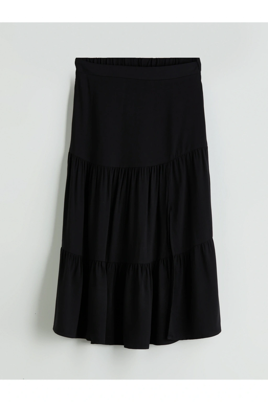 Beli lastikli, katkat etek.; %100 kumaştan.