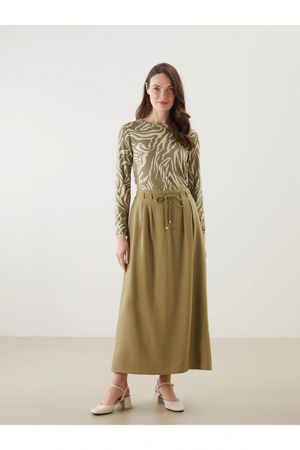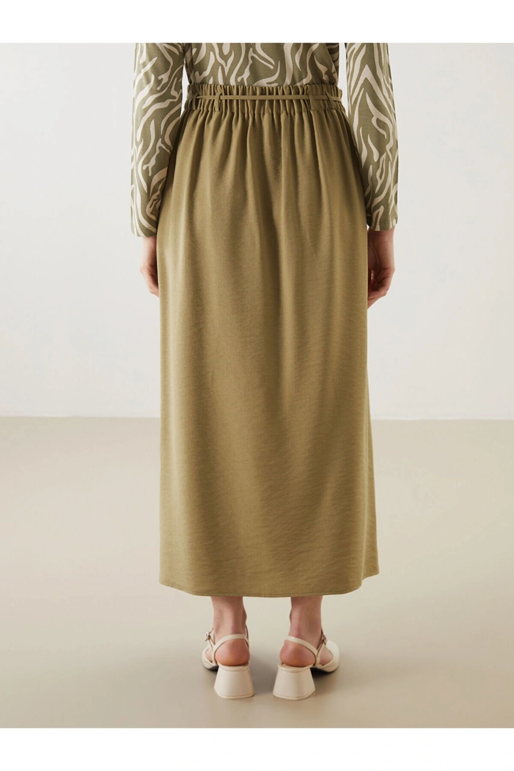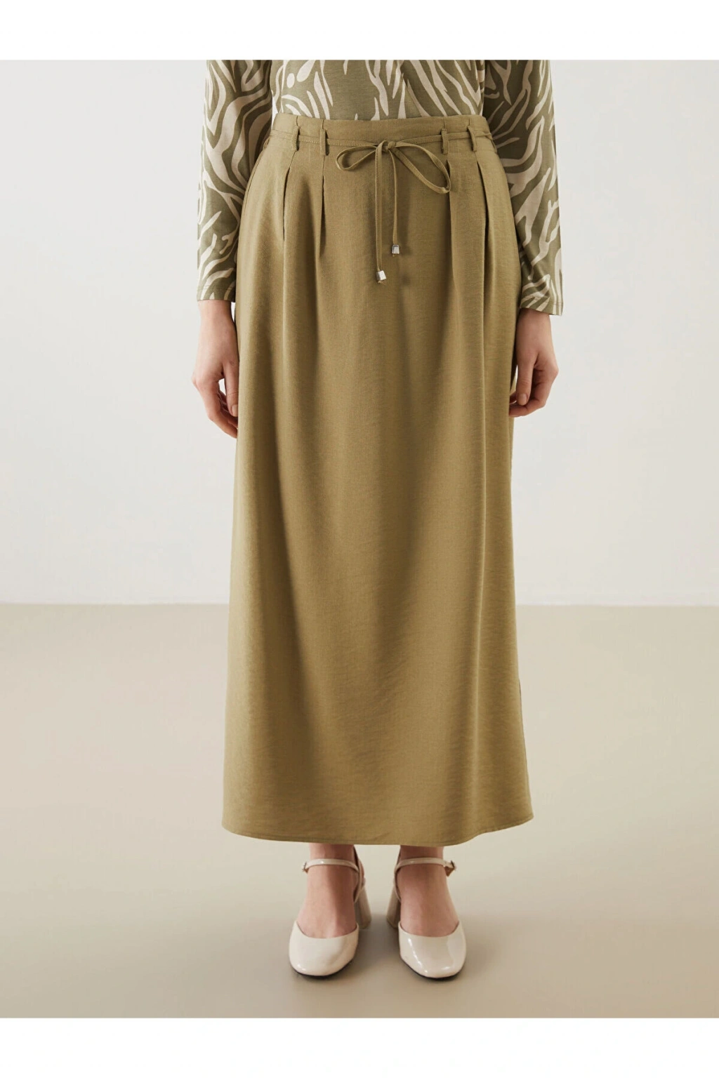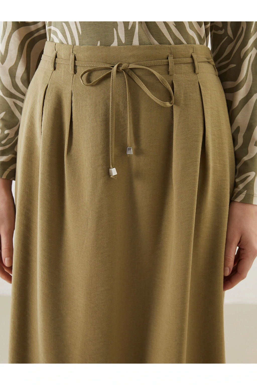 Ürün Açıklaması Beli pilili ve bağcıklı kadın etek, keten görünümlü kumaştan üretilmiştir.; Astarsız ve uzun boyludur.; Manken Bilgisi Göğüs: 87 cm Bel: 60 cm Basen: 90 cm Boy: 175 cm Manken 40 beden ürün giyiyor.; Ürün İçeriği ve Özellikleri Ürün İçeriği: Ana Kumaş: %14 Poliamid %86 VİSKOZ Ürün Özellikleri: Satıcı: LC Waikiki Marka: LCW Grace Ürün Tipi: Etek Cinsiyet: Kadın Kalıp: Standart & Regular Kumaş: Keten Görünümlü Bel Fiti: Beli Lastikli Desen: Düz Kalınlık: İnce Siluet: A Kesim Astar Detay: Astarsız Uzunluk: Uzun Koleksiyon: Büyük Beden Menşei: TURKIYE