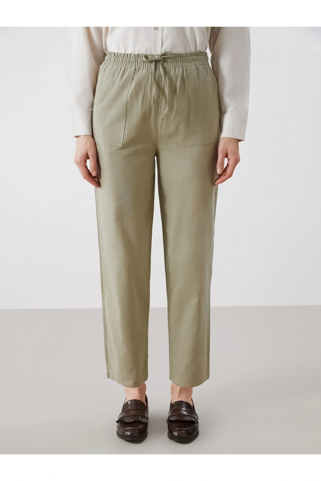 Beli Lastikli Keten Karışımlı Kadın Pantolon