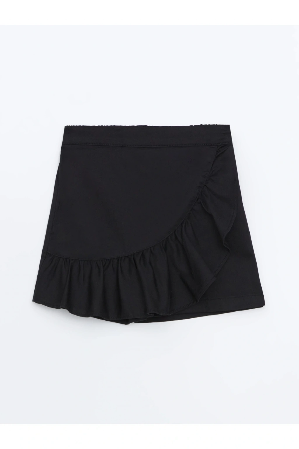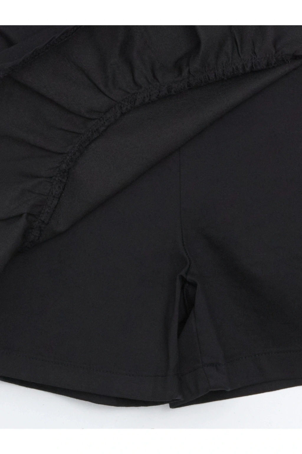Lastikli beliyle rahat bir kullanım sunan şort etek, dayanıklı gabardin kumaşı sayesinde uzun ömürlü bir tercih sunar.; Fırfır detaylarıyla hareketli ve zarif bir stil tamamlar.