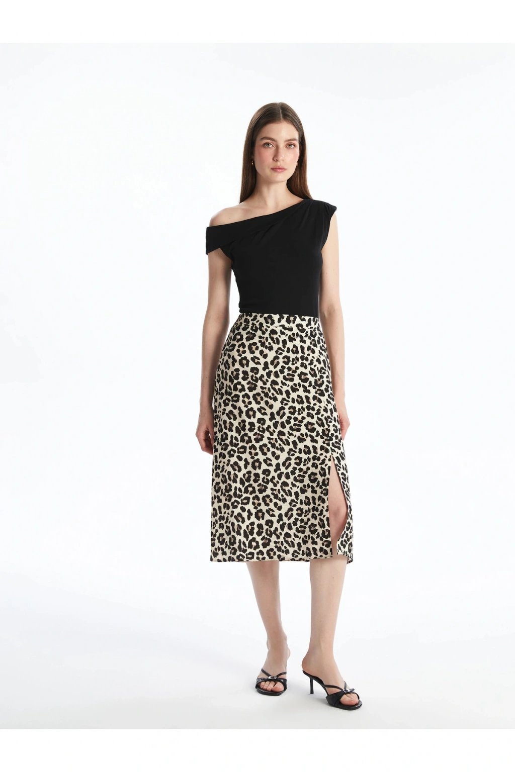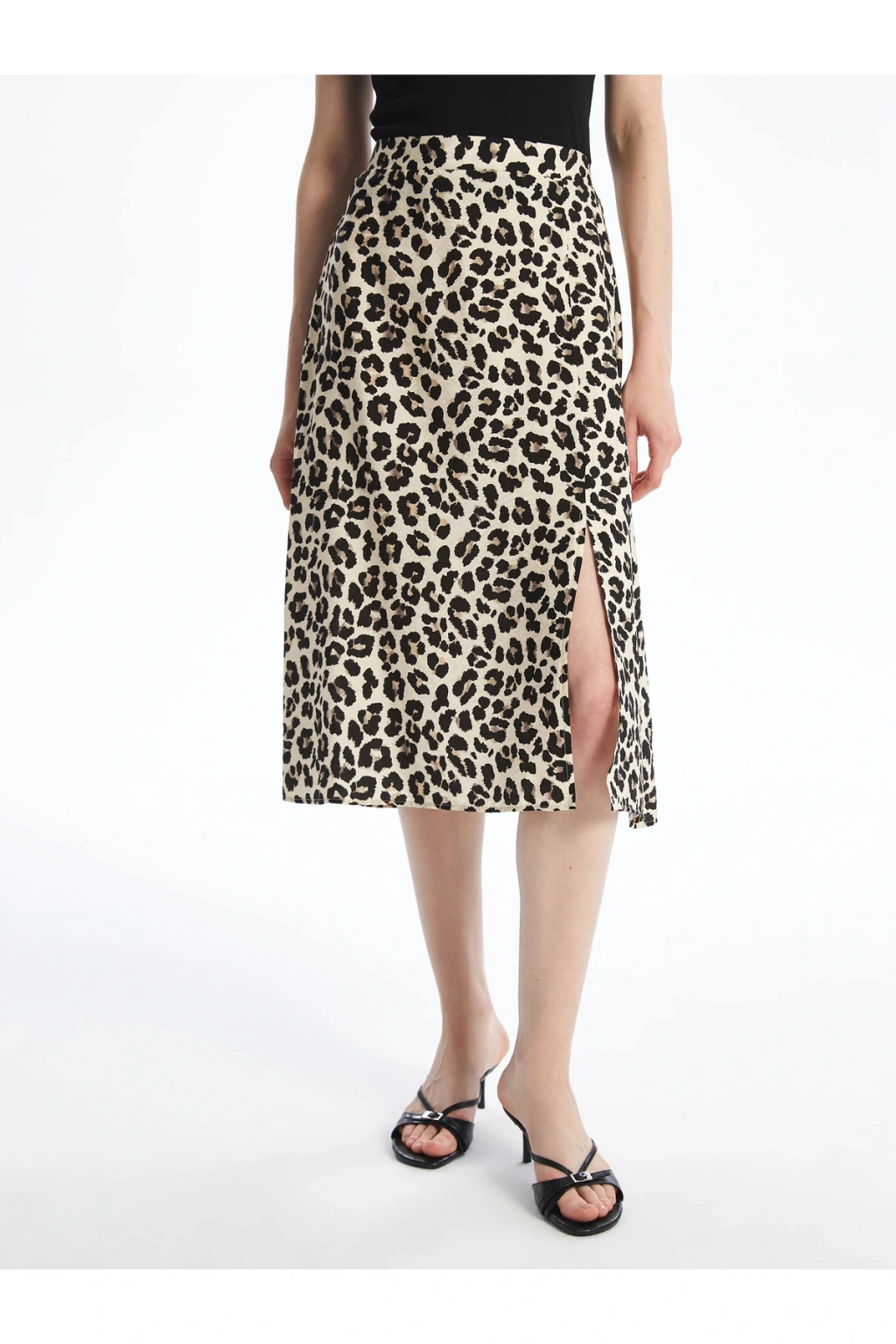 LCWAIKIKI Classic Yeşil Beli Lastikli Desenli Şifon Kadın Pileli Etek