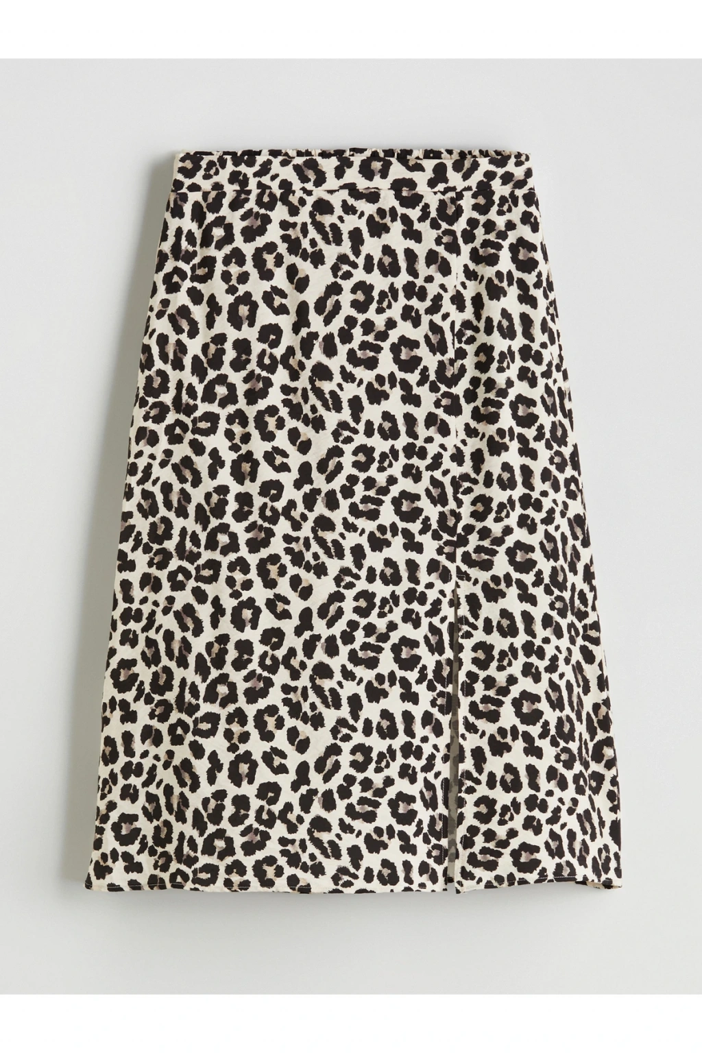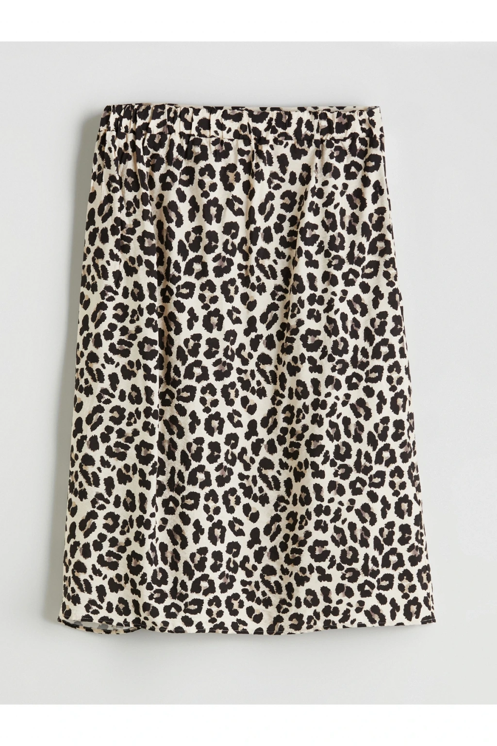 Beli lastikli kadın etek, yumuşak dokulu kumaştan üretilmiştir.; Yırtmaçlı tasarıma sahiptir.