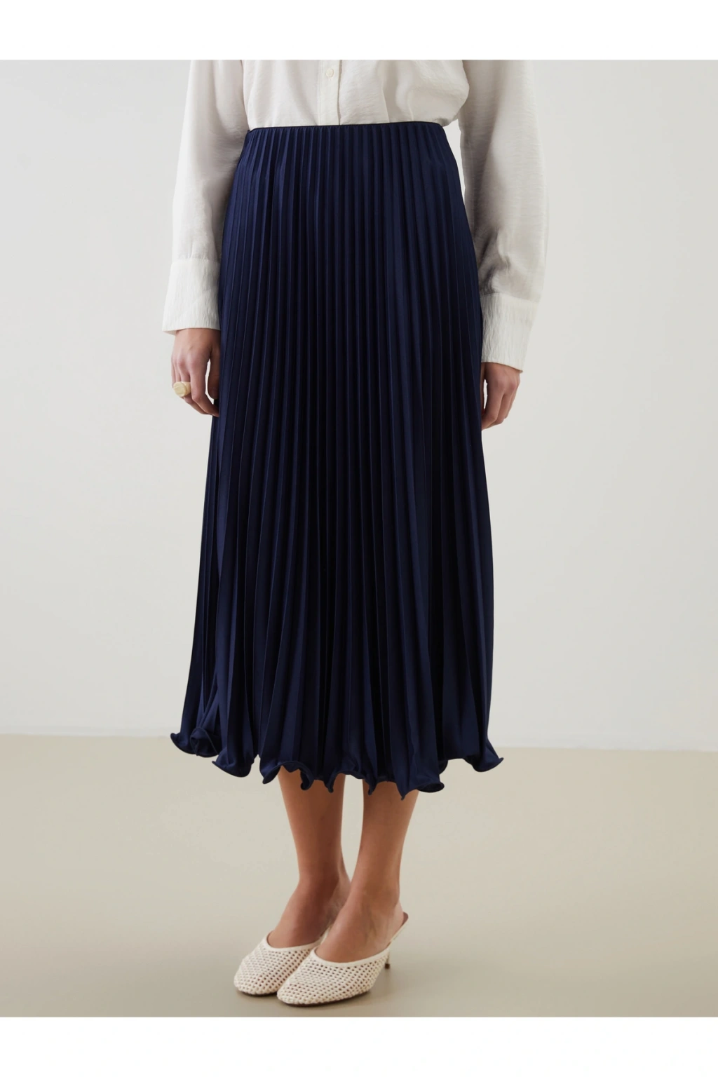 Beli lastikli kadın pileli etek, şifon kumaştan üretilmiştir.; Şifon kumaşın hafif yapısı sayesinde rahat bir kullanım sağlar ve hareket özgürlüğü sunar.; Beli saran lastikli yapısı sayesinde vücudunuza uyum sağlar.
