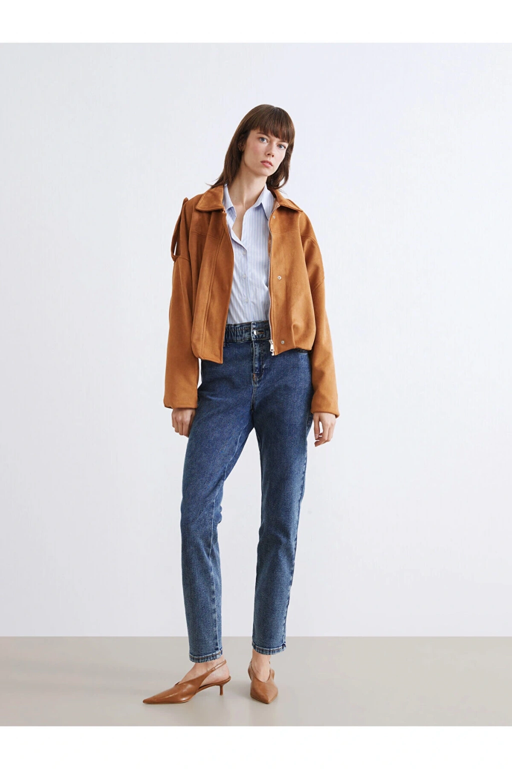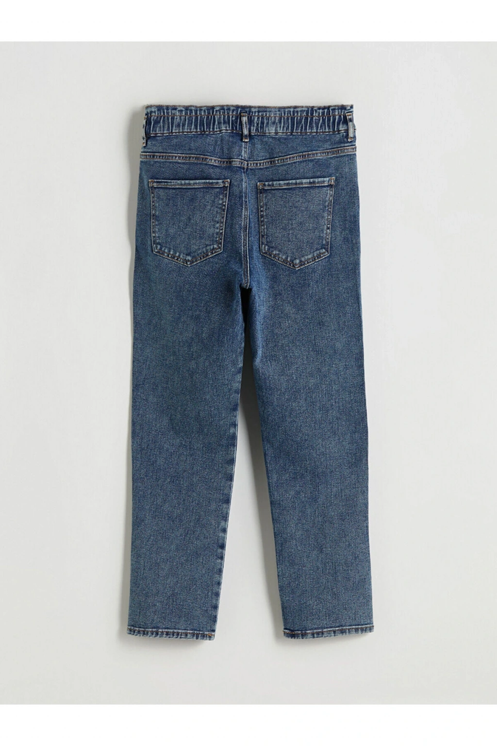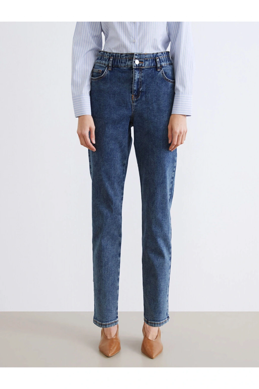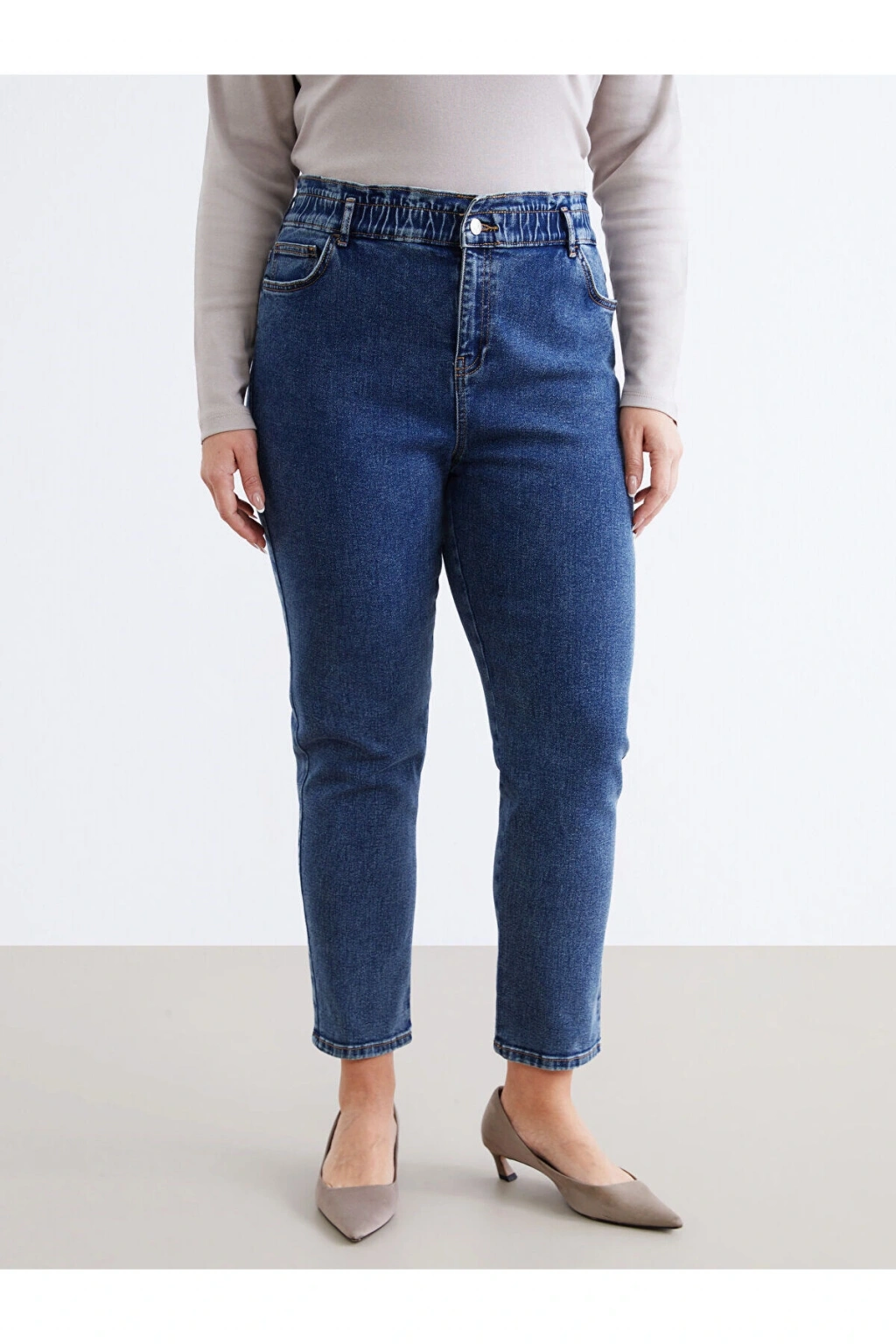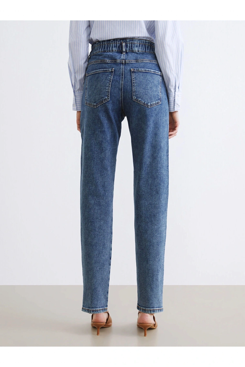 Slim mom fit; belden bileğe kadar daralarak inen bilek boy bir kesime sahiptir. Tasarımı 90'lar denim görüntüsünün günümüze uyarlanmış şeklidir. Esnek kumaş yapısı ile gün boyu rahatlık ve hareket özgürlüğü sağlar.