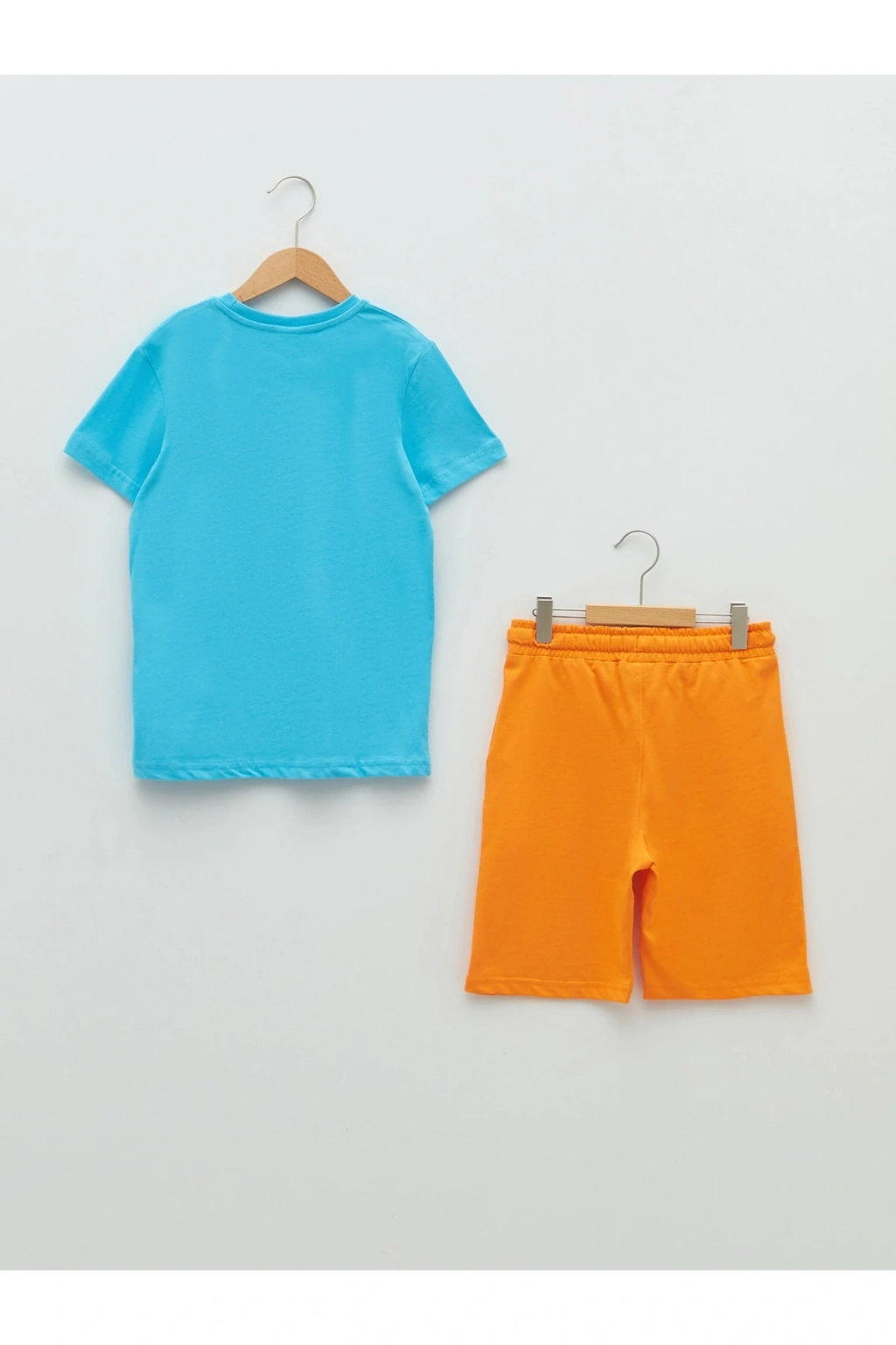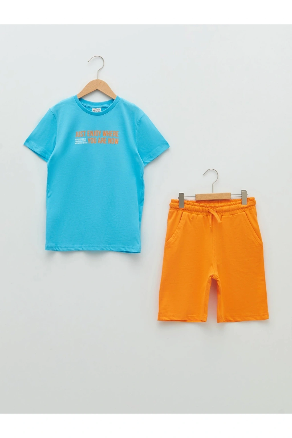 Bisiklet Yaka Baskılı Kısa Kollu Erkek Çocuk Tişört Ve Şort