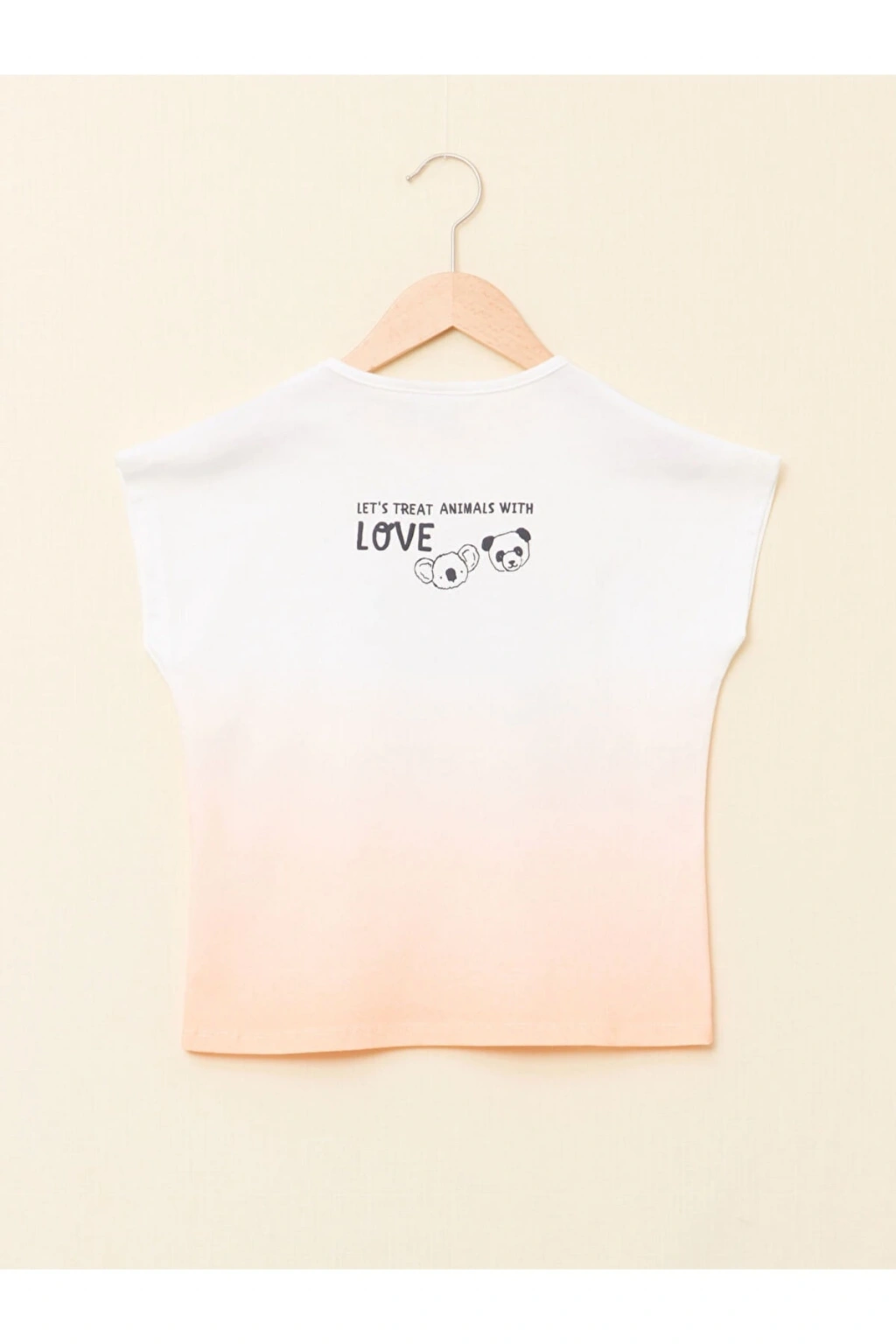 LCW Kids Mercan Bisiklet Yaka Palmiye Baskılı Kız Çocuk Tişört