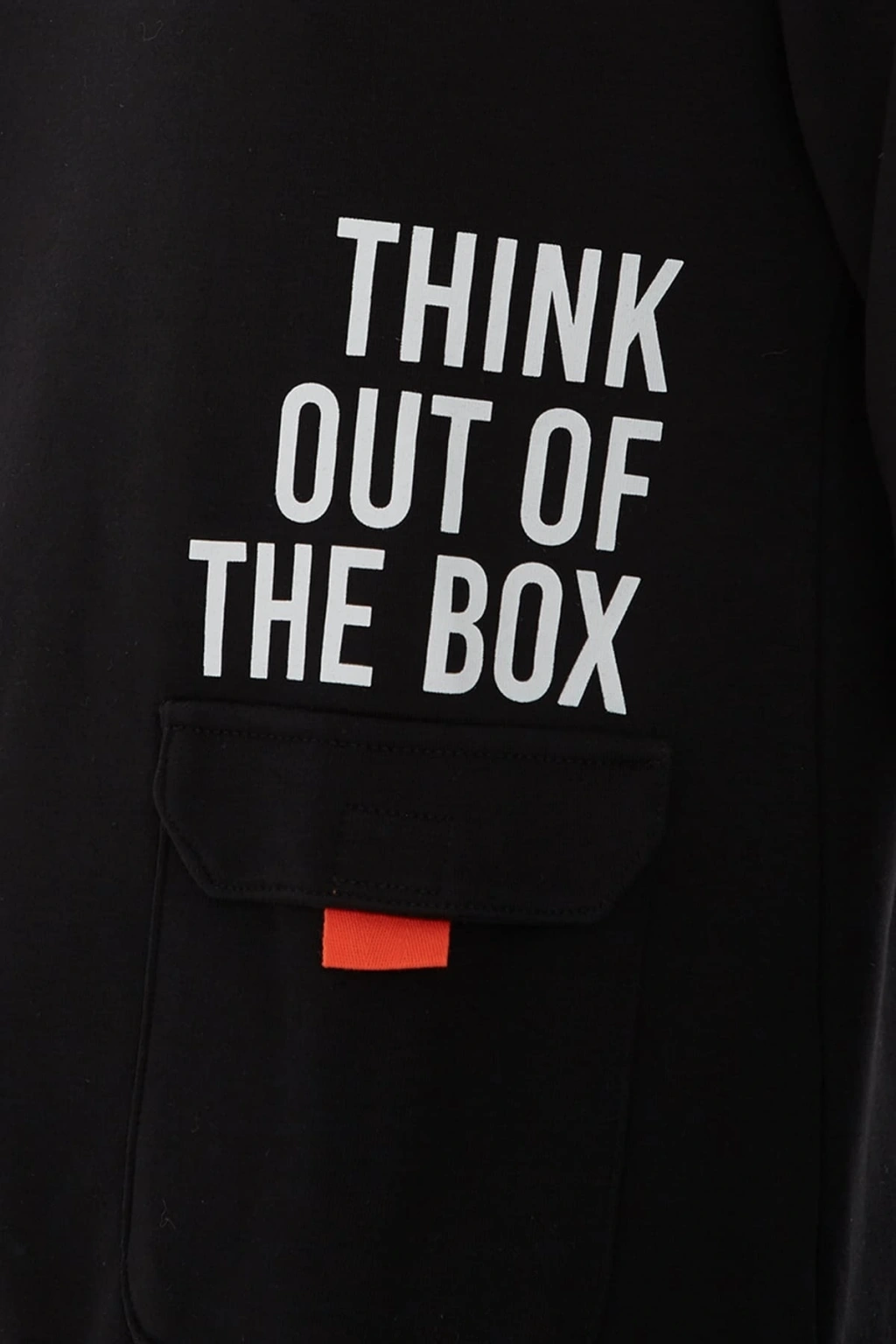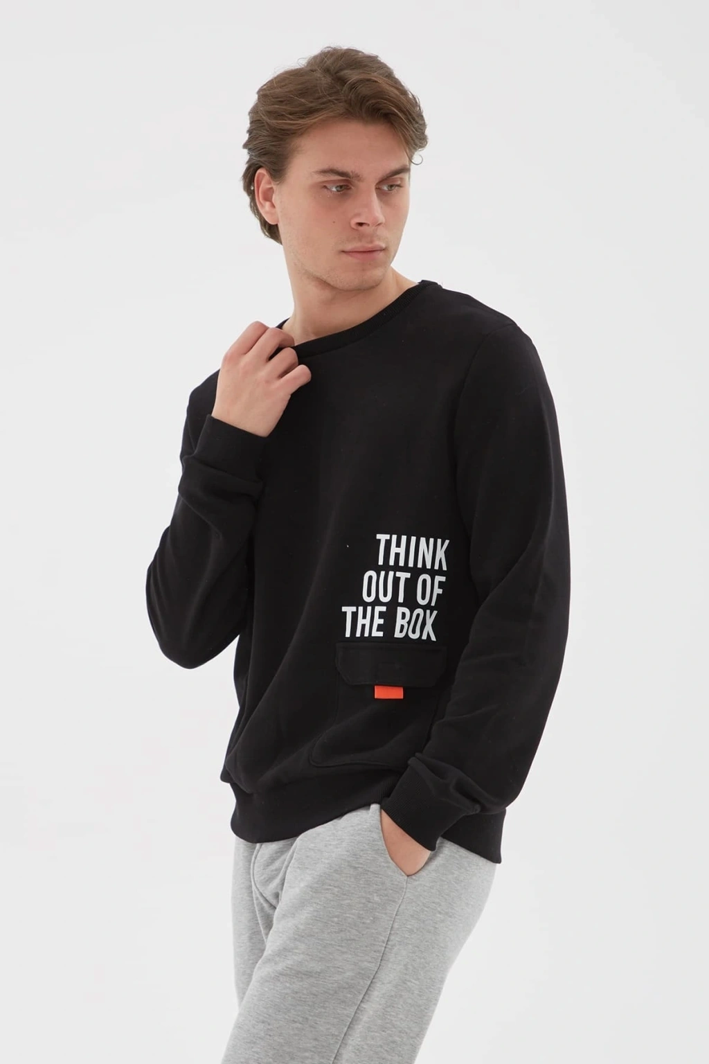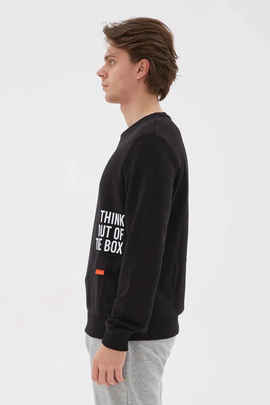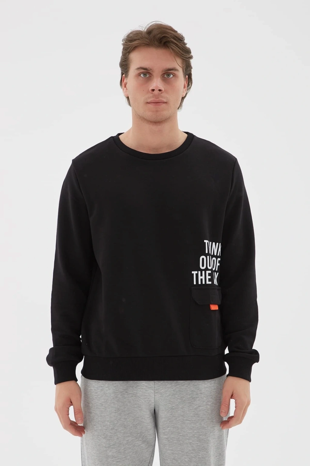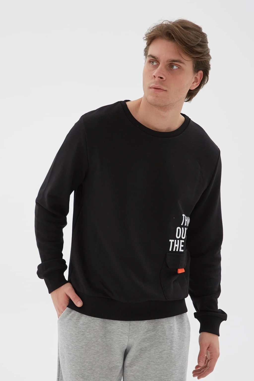 Bisiklet Yaka Baskılı Sweatshirt Siyah / Black