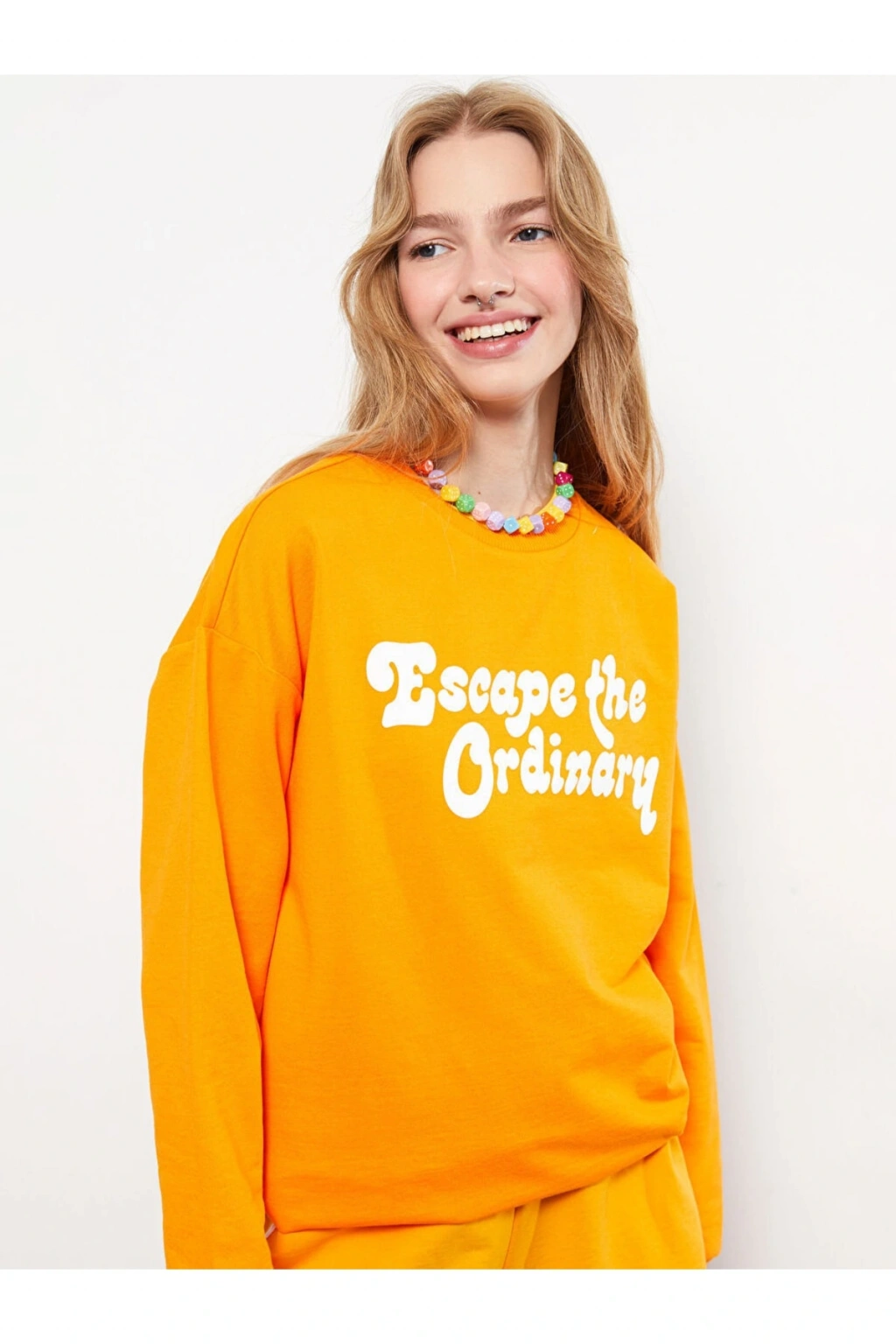 Ürün Açıklaması Bilekleri ve alt kısmı ribanalı ; Manken Bilgisi Göğüs: 82 cm Bel: 60 cm Basen: 87 cm Boy: 174 cm Manken S beden ürün giyiyor. Ürün İçeriği ve Özellikleri Ürün İçeriği: Ana Kumaş: %51 Polyester %49 Pamuk Ürün Özellikleri: Uzunluk: Standart Desen: Baskılı / Desenli Kalıp: Rahat Kalıp Kalınlık: Orta Kalınlık Kol Boyu: Uzun Kol Ürün Tip: Sweatshirt Yaka: Bisiklet Yaka Kumaş: Sweatshirt Kumaşı Marka: LCW Casual Stil: Casual/Günlük Cinsiyet: Kadın
