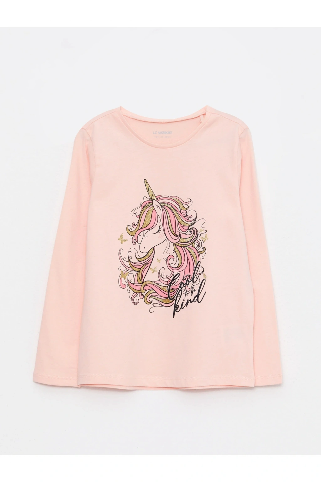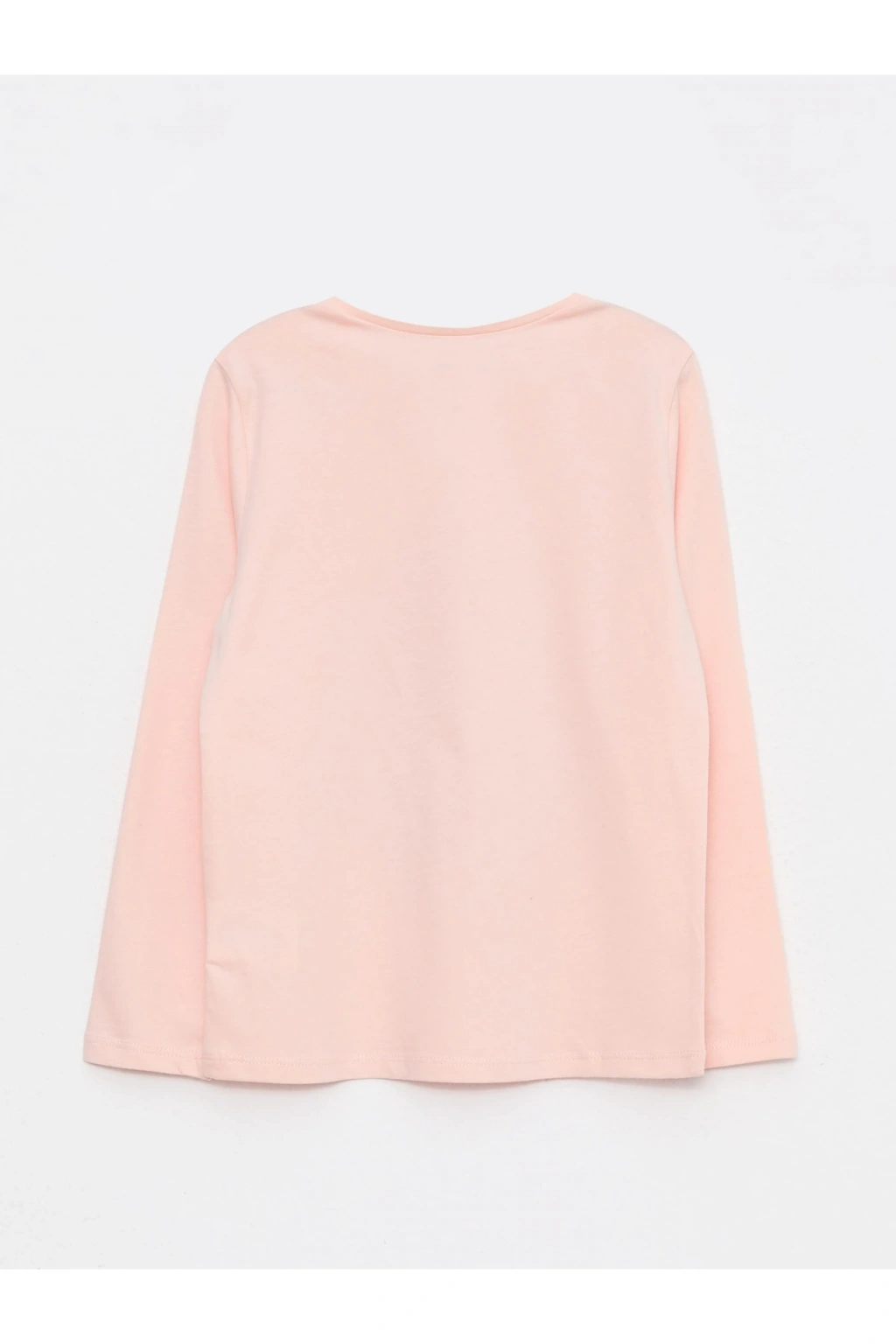 Bisiklet Yaka Baskılı Uzun Kollu Pamuklu Kız Çocuk Tişört