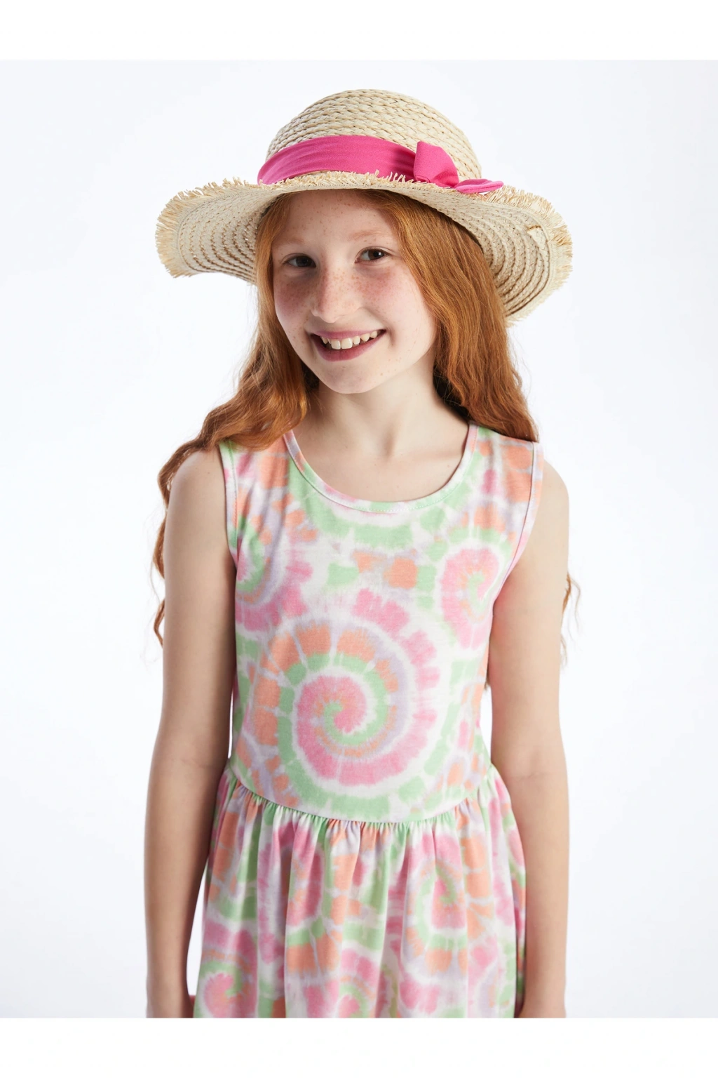 Bisiklet Yaka Batik Desenli Kız Çocuk Elbise