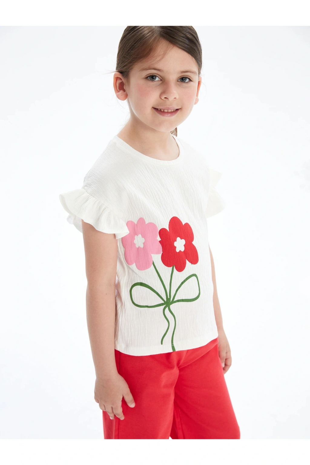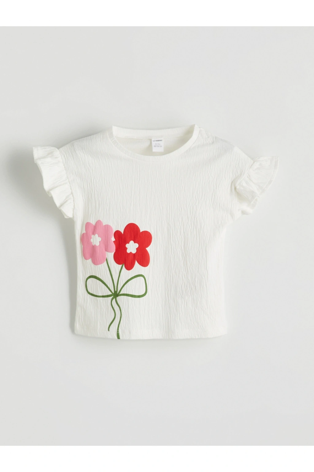 Yumuşak pamuklu kumaşıyla gün boyu rahatlık sunan bu tişört, çiçek desenleriyle miniklerin stiline renkli ve zarif bir dokunuş katar.; Bisiklet yaka tasarımı sayesinde kolayca giydirilip çıkarılabilir.